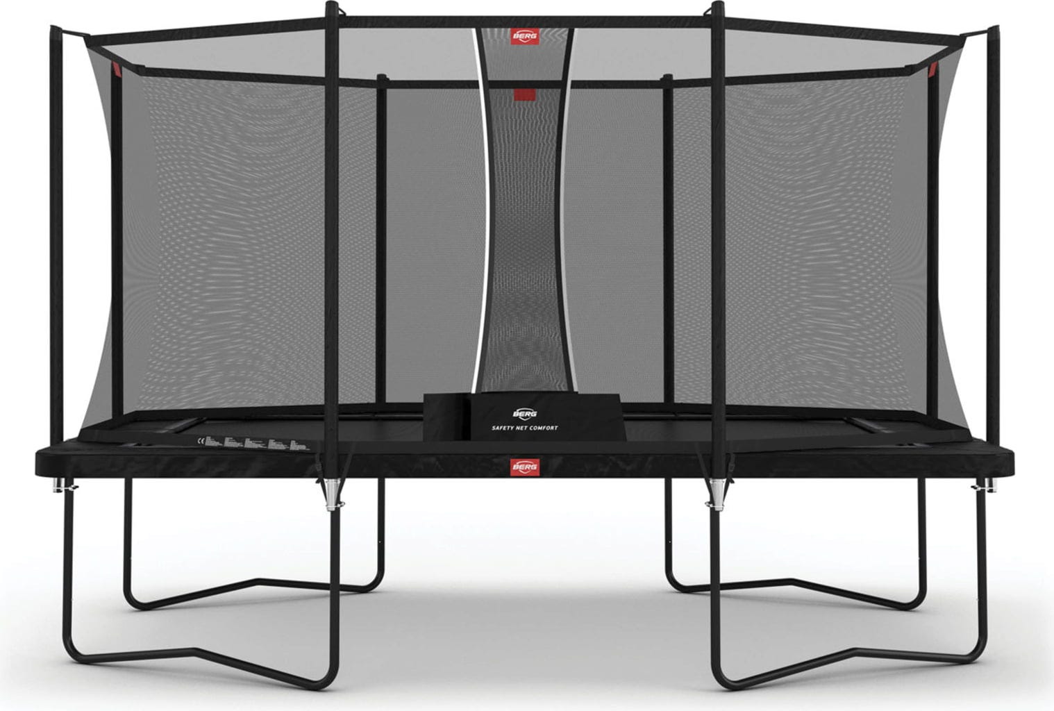 Атрактивен и стабилен батут, който е особено подходящ за по-големи градини. Със специално разработена рамка, батутът е по-стабилен от много други батути от този размер. Пружините задържат повърхността за скачане особено сигурно и позволяват мощно и удобно подскачане. Покрити са с широк дебел PVC защитен ръб. Това надеждно предпазва от наранявания на краката. Предпазната мрежа допълва батута. Той остава опънат на външните стълбове и повишава значително комфорта на безопасността.