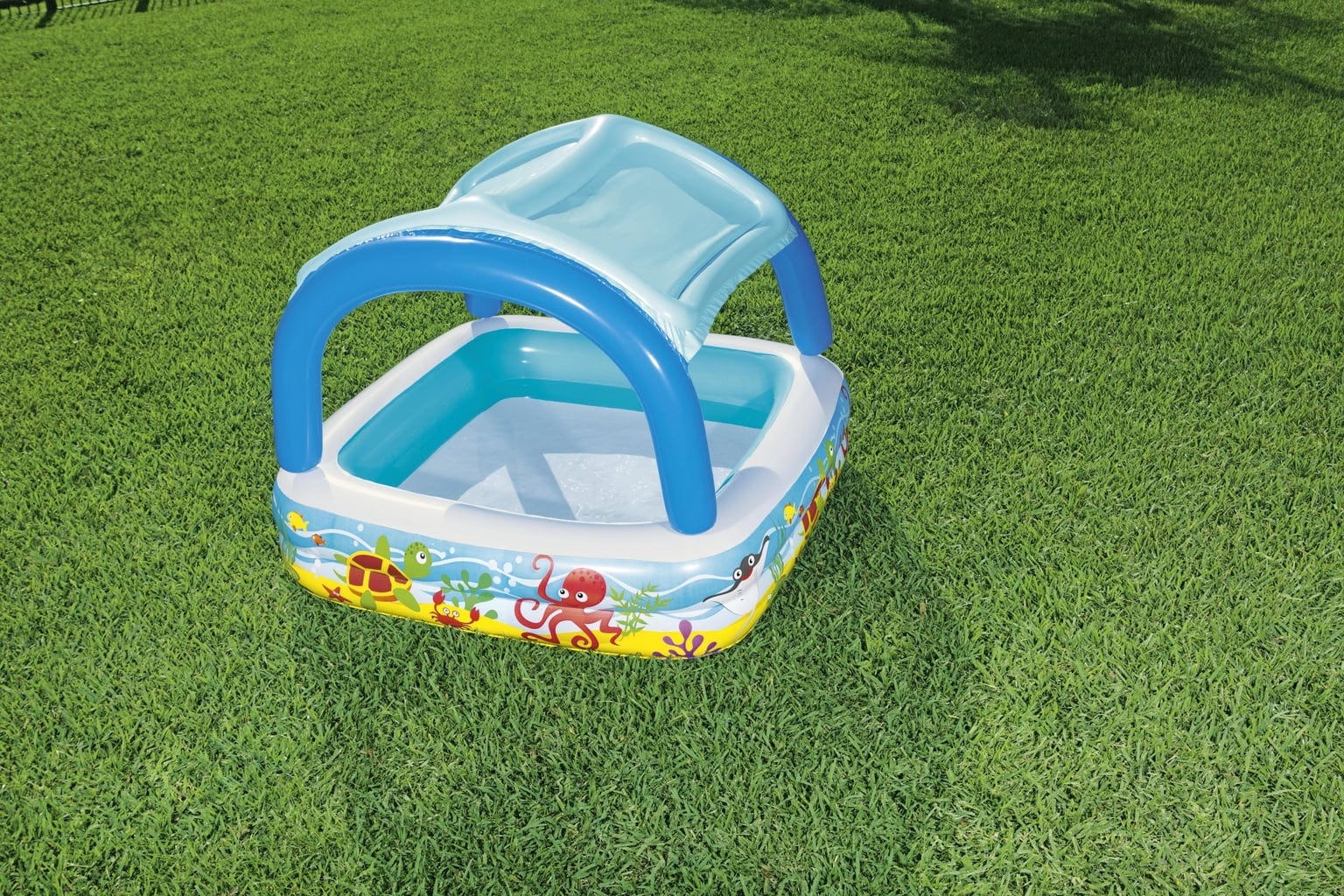 С басейна Beach Buddy™ с UV-защитен покрив можете да създадете перфектен малък воден свят директно във вашата градина! Този басейн е идеален за малките изследователи над две години, осигурявайки достатъчно пространство за игри и освежаване. Радостният морски дизайн стимулира въображението и прави плуването истинско приключение.