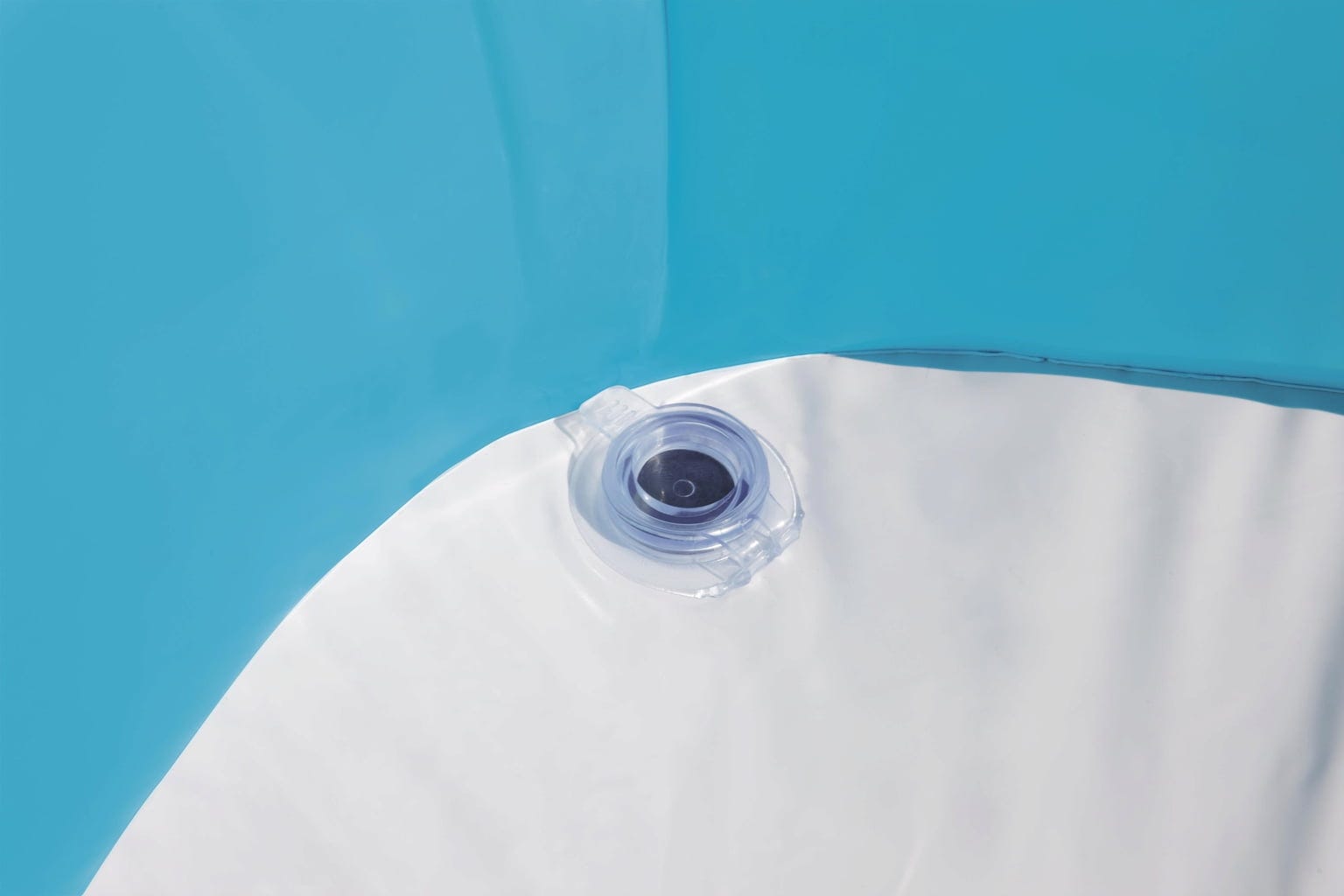 Основната атракция е сваляемият UV Careful™ защитен покрив. Той не само осигурява приятна сянка, но и защитава децата ви от интензивните слънчеви лъчи. Монтажът е изключително лесен и бърз. За нула време басейнът е надуван, покривът е на мястото си и водните забавления започват. С воден обем от 265 литра, има достатъчно място за пръски и освежаващи моменти!