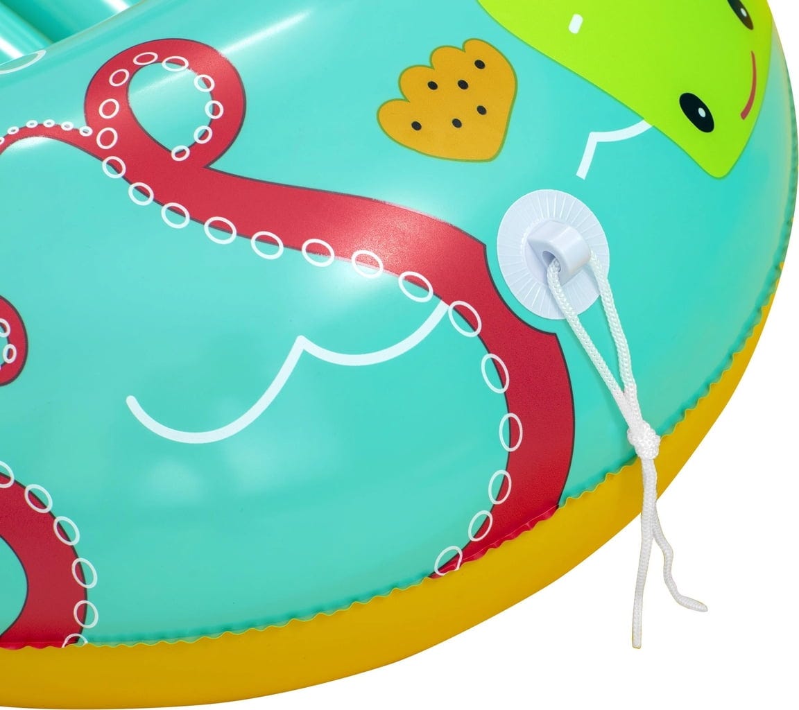 Готови ли сте за тропическо приключение във водата? Вдигнете платната с Bestway Детска надуваема лодка Tropical Crew! Тази цветна лодка е създадена за малките водни приключенци над 3 години и обещава часове плувна забава. Със своите 110 x 64 x 25 см, тя е с идеален размер за уютни завои или просто да се носите по течението.
