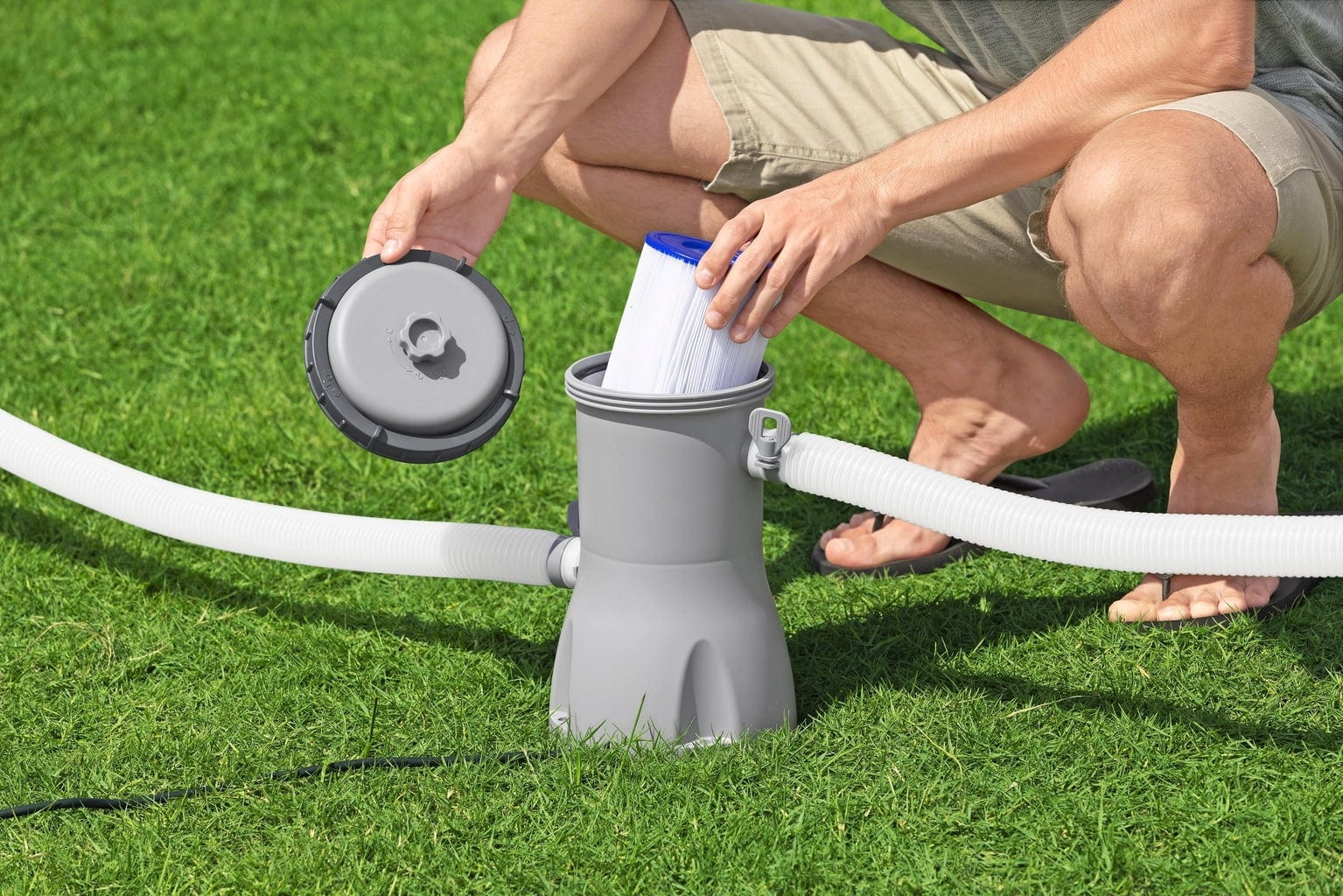 За да можете да започнете веднага, филтърната помпа идва с филтърна касета с размер 2. Ще е по-лесно, нали? С инвестирането в Bestway филтърната помпа вие получавате безкомпромисно удоволствие от вашия басейн и кристално чиста вода - за един перфектен летен сезон!