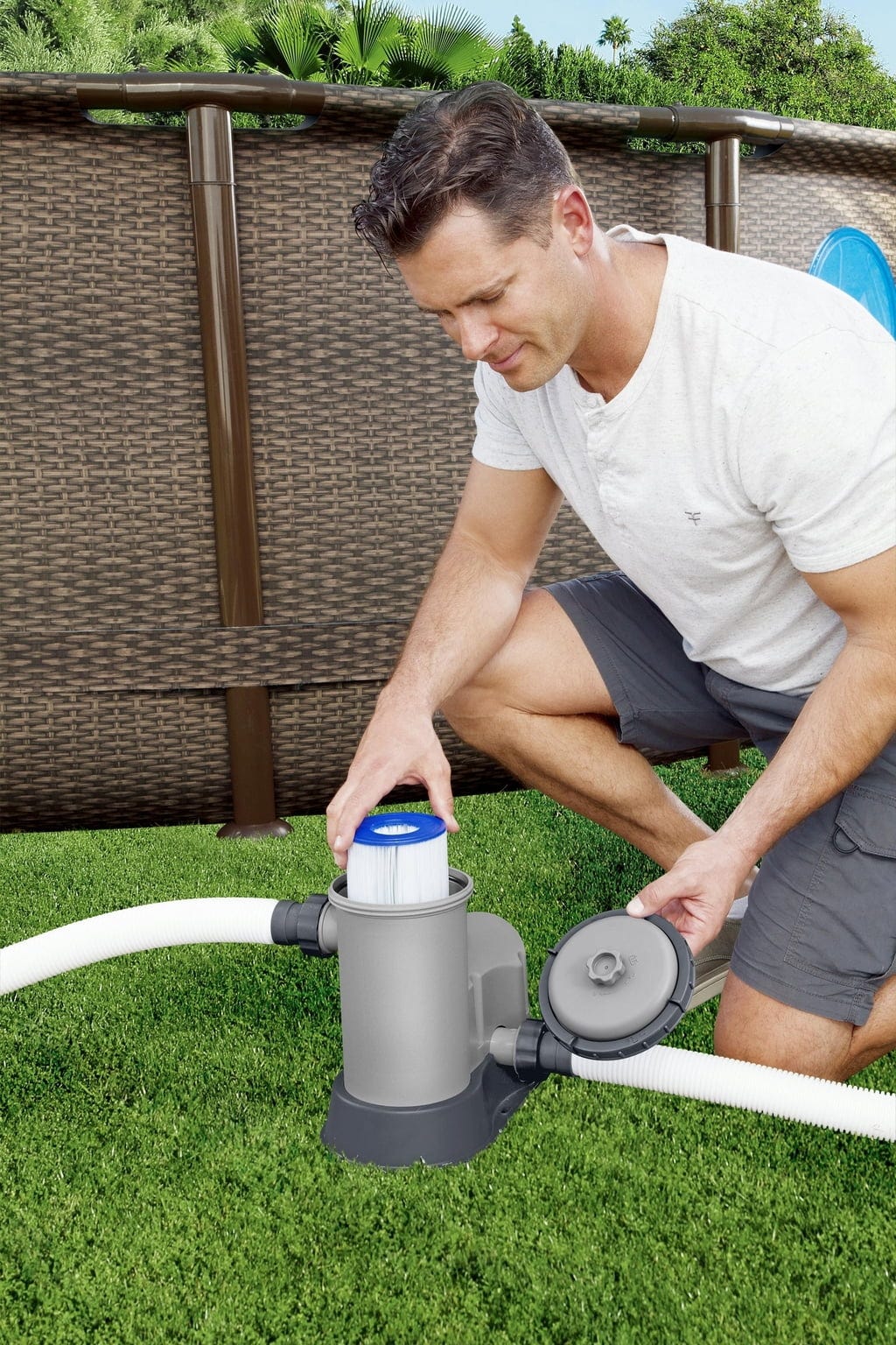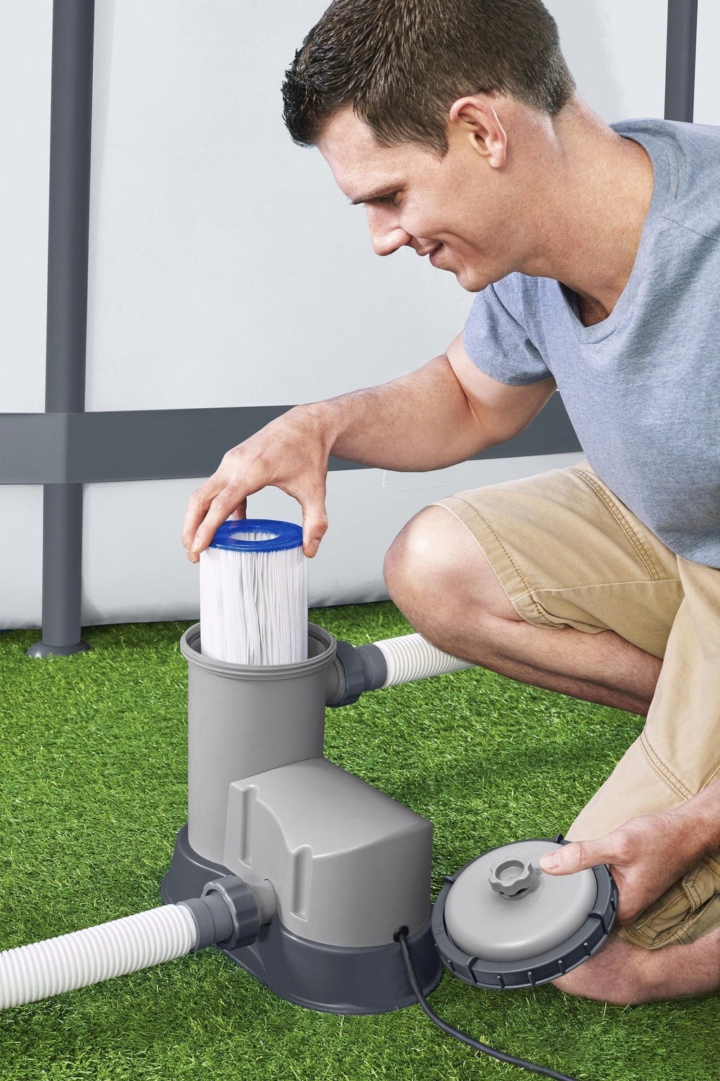 За да започнете веднага, с филтърната помпа получавате и филтърна касета от размер 3. По-лесно от това не може, нали? С Bestway филтърната помпа инвестирате в чисто удоволствие от къпането и кристално чиста вода – за вашето перфектно лято!
