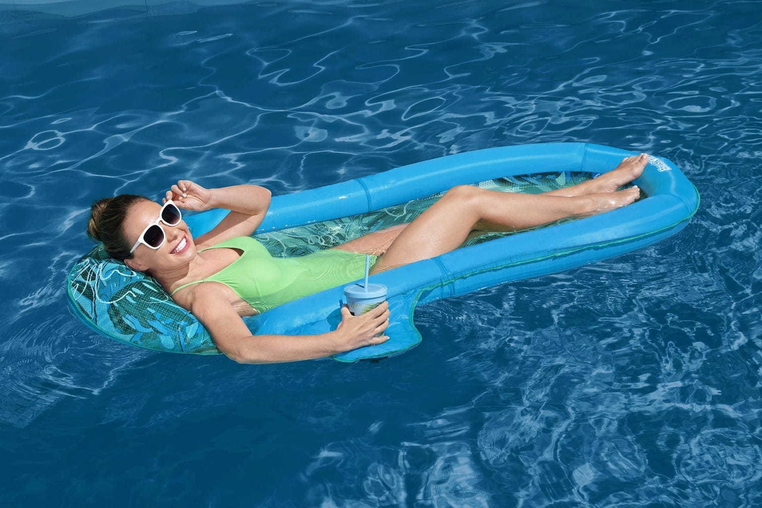 С Flex 'n Fold Poolмат на Bestway плавате спокойно по водната повърхност и се наслаждавате на приятно освежаване благодарение на водопроницаемата ComfortCool мрежесто легло! Комфортният и издръжлив текстилен калъф гарантира приятно усещане при лежане, а изключително мека възглавница за глава и интегриран държач за напитки добавят допълнителен комфорт.