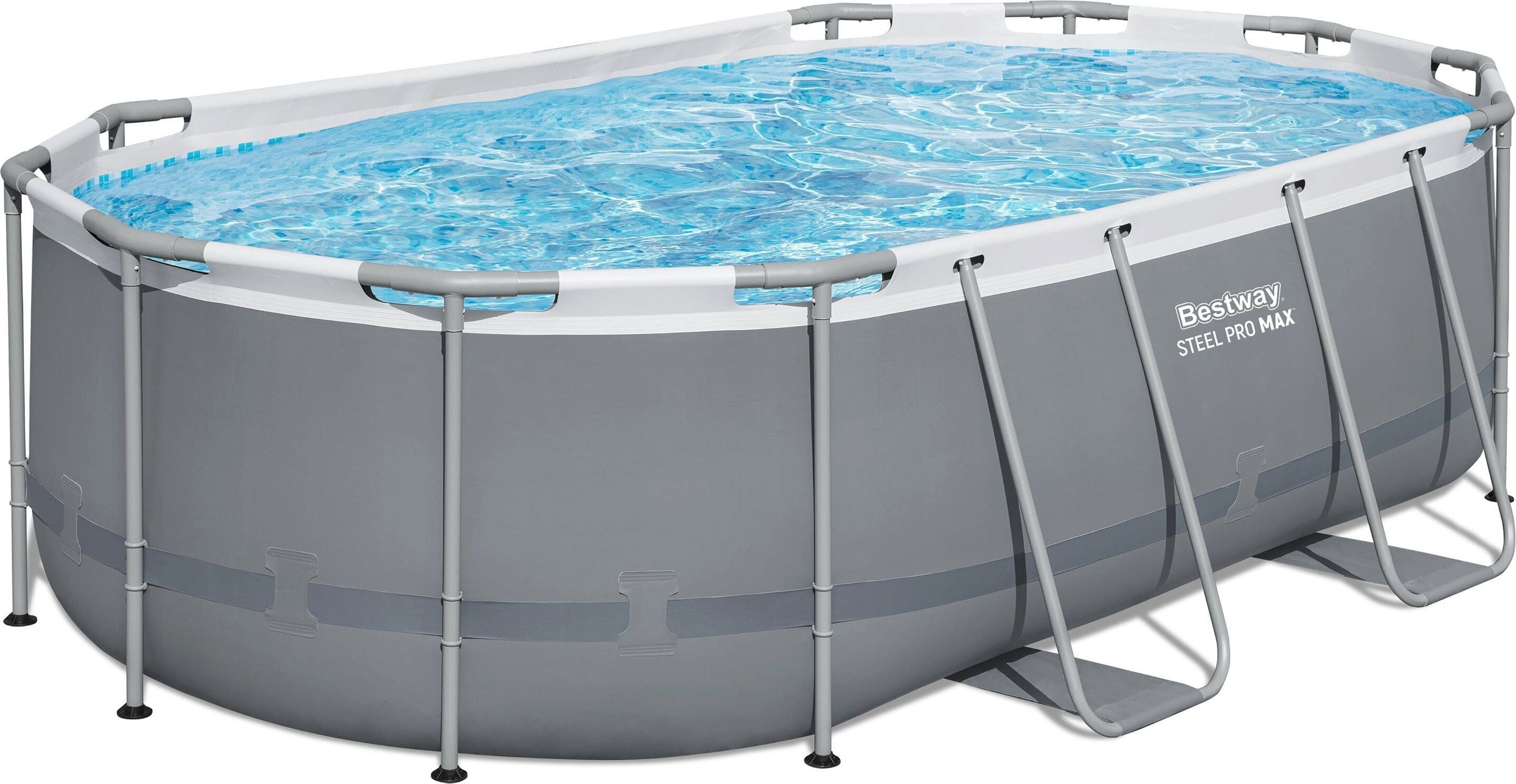 С Bestway Steel Pro MAX™ в елегантен овален дизайн ще получите максимално удоволствие от плуването с оптимално оползотворяване на пространството у дома. Модерното сиво на външната стена се хармонира перфектно с светлия мозайчен вид отвътре, който прави водата да изглежда привлекателно синя.