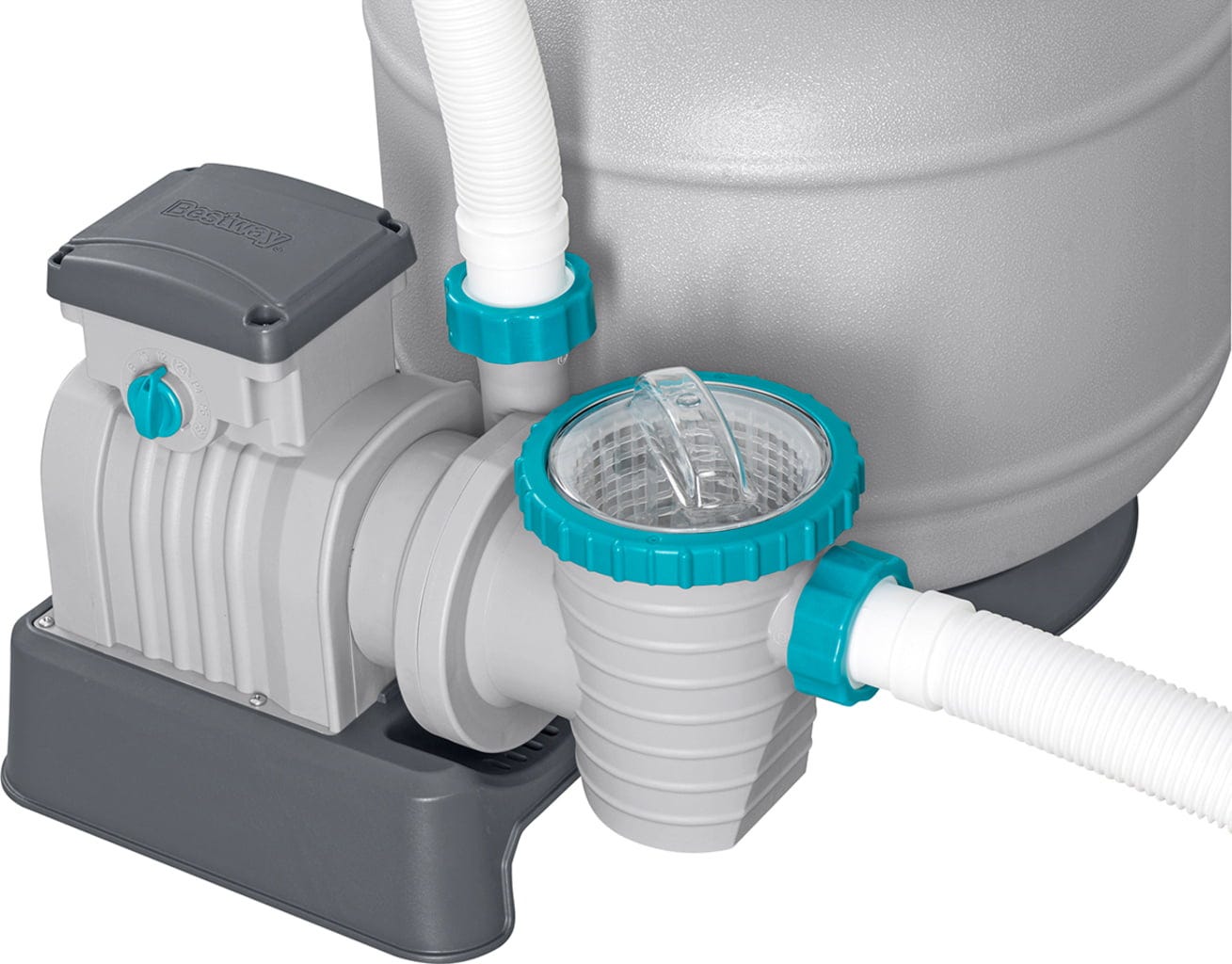 С този Bestway пясъчен филтър с таймер можете да се наслаждавате на усещането за изключително чиста вода всеки ден! Забравете за мътна вода и досадни замърсявания - тази система осигурява перфектна чистота във вашия басейн! Благодарение на силната помпена мощност и ефективната филтрация вашата вода винаги ще бъде кристално чиста. И най-хубавото: таймерът ще свърши работа за вас. Просто задайте кога системата да работи и се отпуснете.