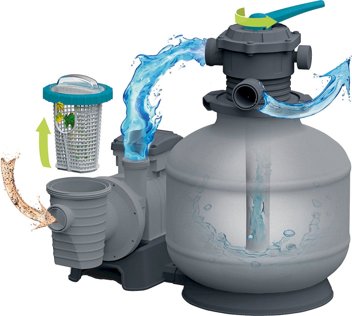 С вградения защитен превключвател можете да се уверите, че всичко върви гладко. Операцията е изключително лесна: един завъртък на 6-пътния вентил и вече може да избирате между различни функции. А благодарение на манометъра имате представа за налягането в системата. Независимо дали предпочитате традиционен пясък или иновативните Polysphere™ филтърни топчета – тази инсталация е гъвкава и се адаптира към вашите нужди!
