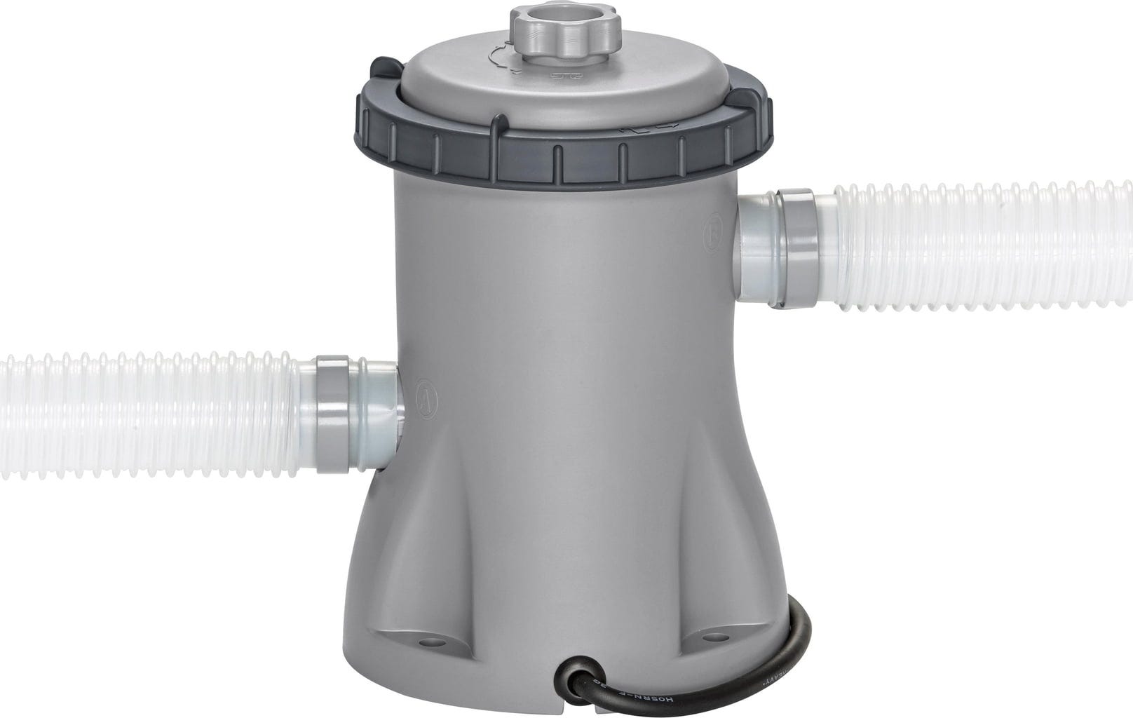За да бъде водата в басейна ви винаги кристално чиста, комплектът включва мощна филтърна помпа с капацитет на протичане от 1060 литра на час. Така винаги можете да се наслаждавате на чиста и освежаваща вода!