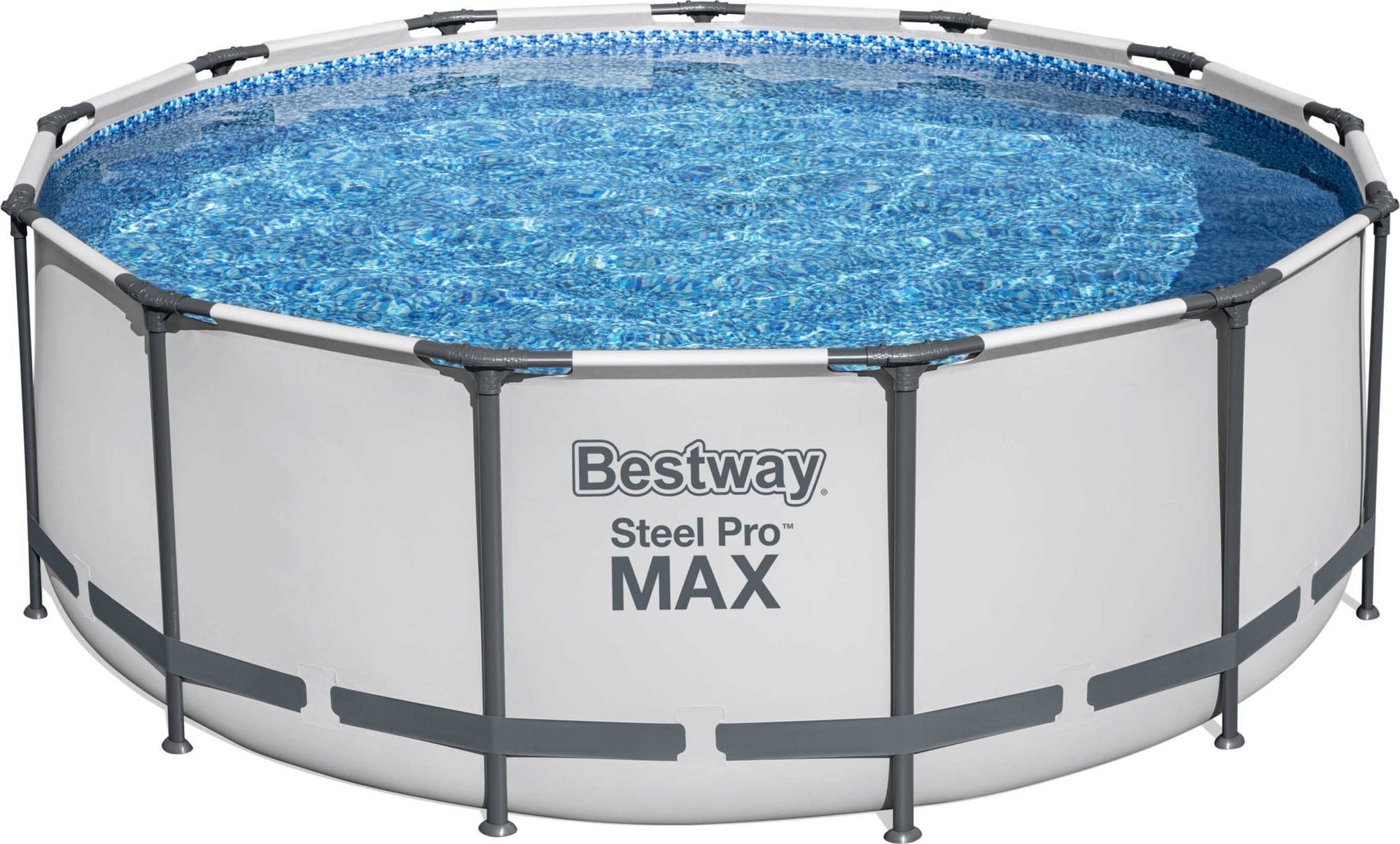 Открийте рамковия басейн Steel Pro MAX™ (396 x 122 cm) от Bestway® за вашата градина. Корозионноустойчиви стоманени рамкови елементи (свързани чрез иновативната система ClickConnect) и 3-слойната, изключително здравина DuraPlus™ фолио са само две от предимствата на този модел.