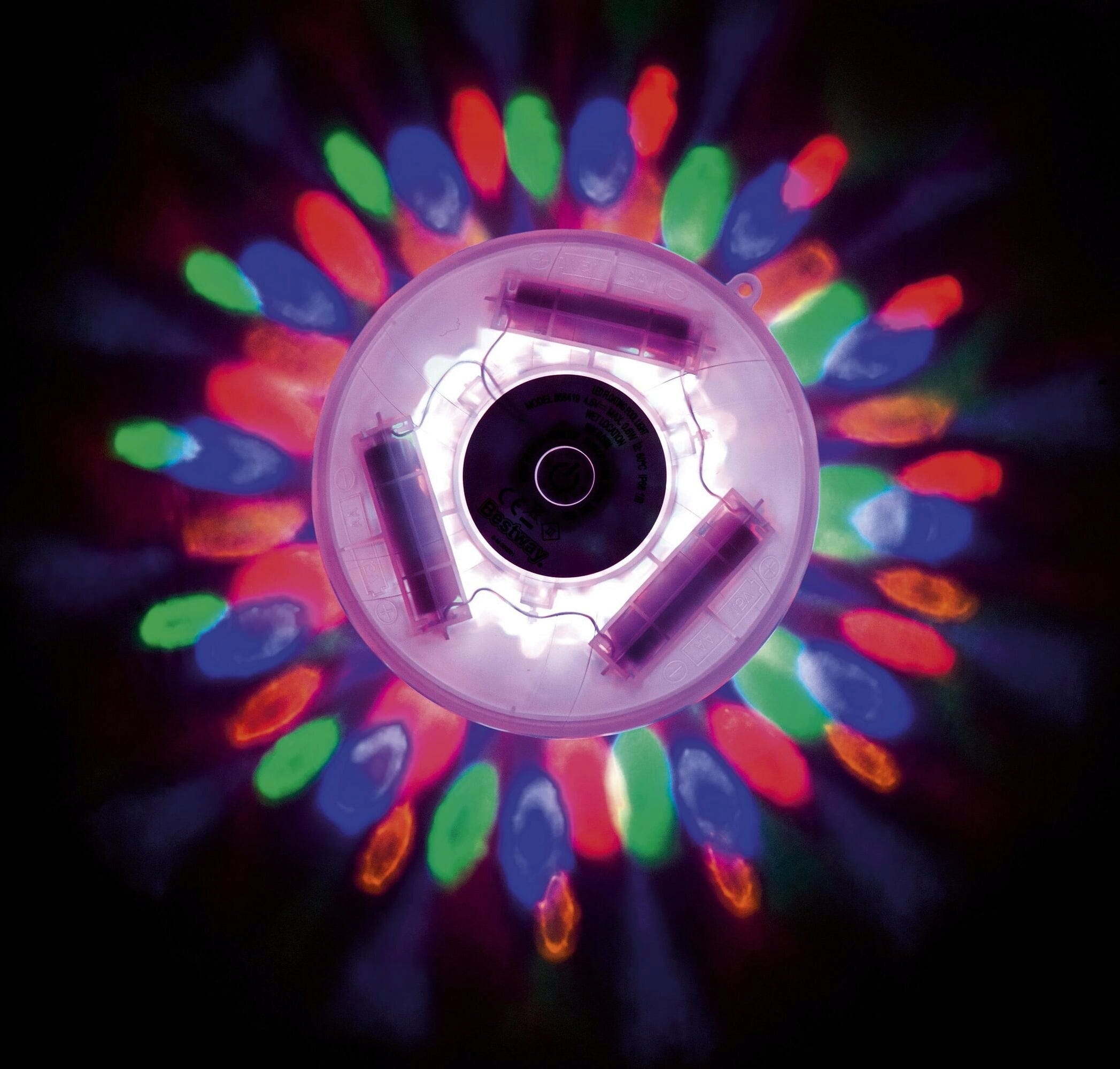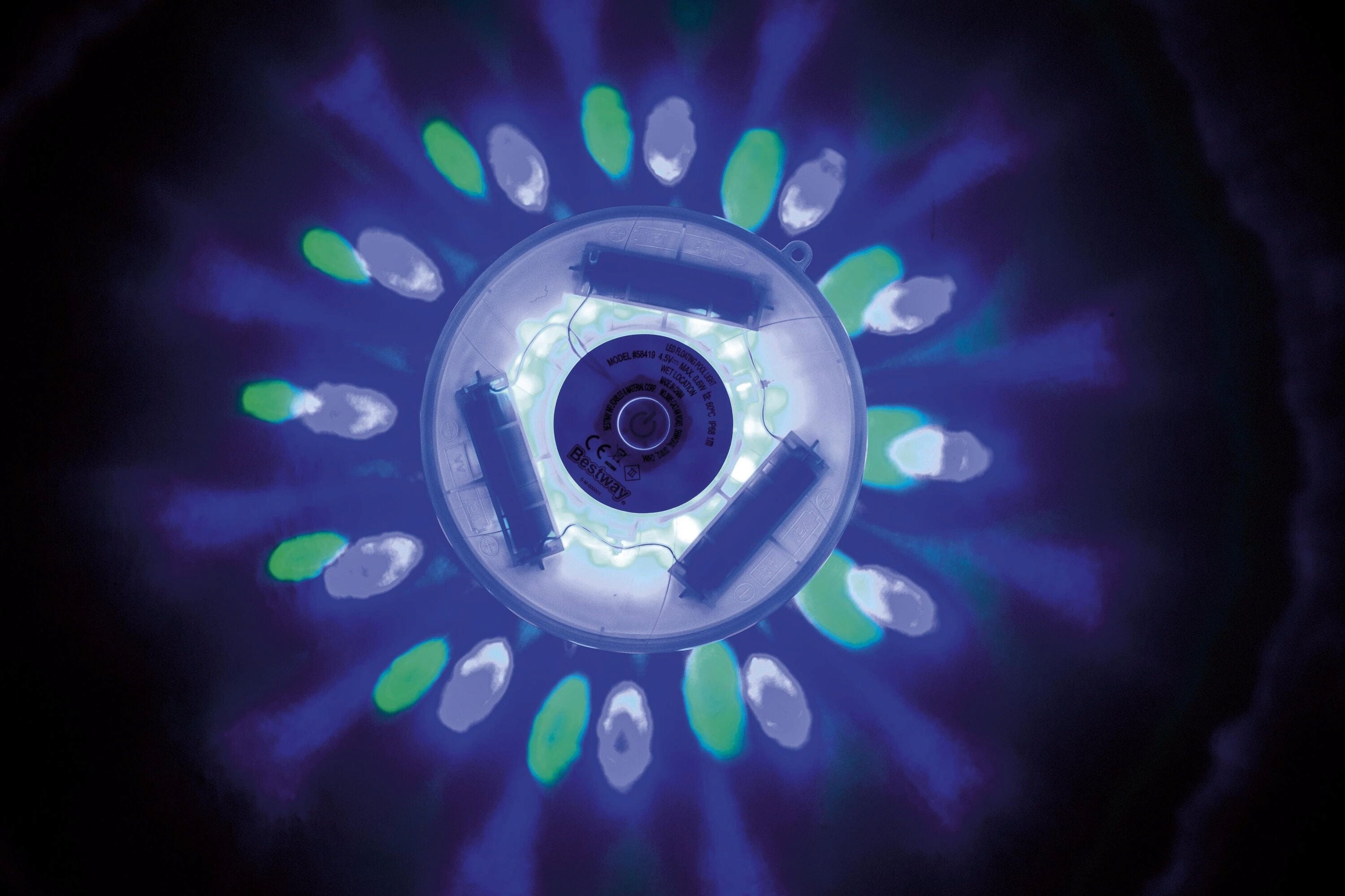 Плаващата, IP-67 водоустойчива LED-светлина от Bestway придава на вашия басейн цветна атмосфера благодарение на четирите мощни LED диода! Със седем различни светлинни програми можете да променяте настроението по всяко време – от нежни цветови преходи до ярки акценти.