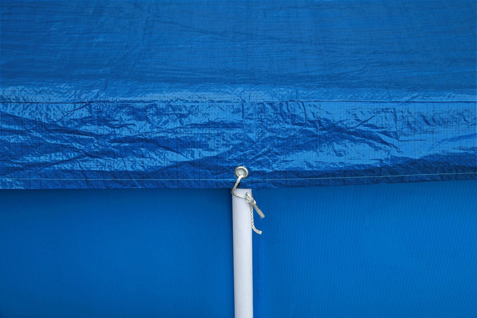 Със здравото PE покривало от Bestway можете да поддържате водата си чиста и да защитите басейна си надеждно от външните условия. Изключително практични са интегрираните отводнителни отвори, които позволяват дъждовната вода да се оттича лесно, предотвратявайки натрупвания на вода върху покривалото. Благодарение на включените фиксиращи въжета, монтажът е лесен и покривалото остава стабилно на мястото си, дори при вятър и дъжд!