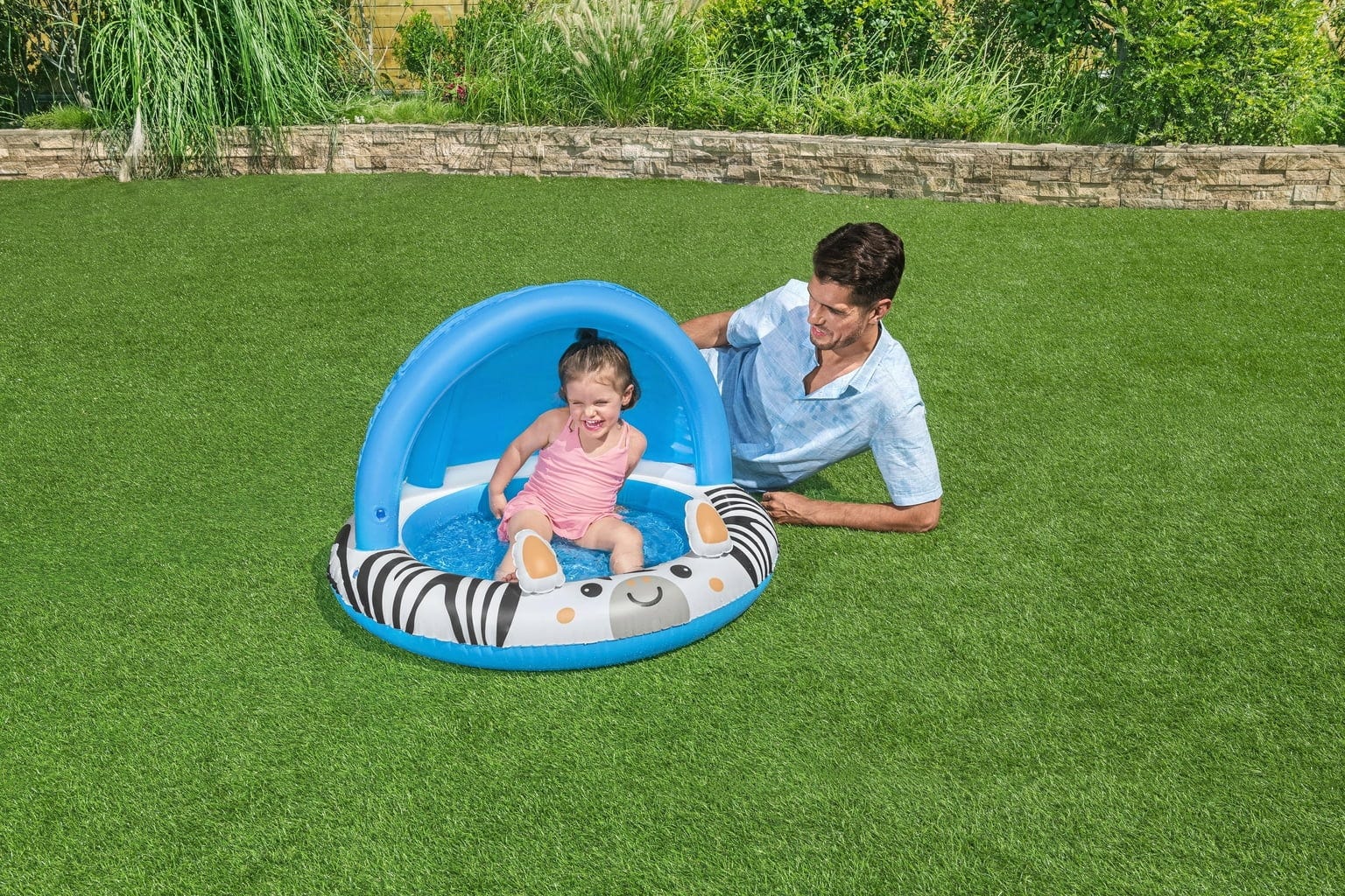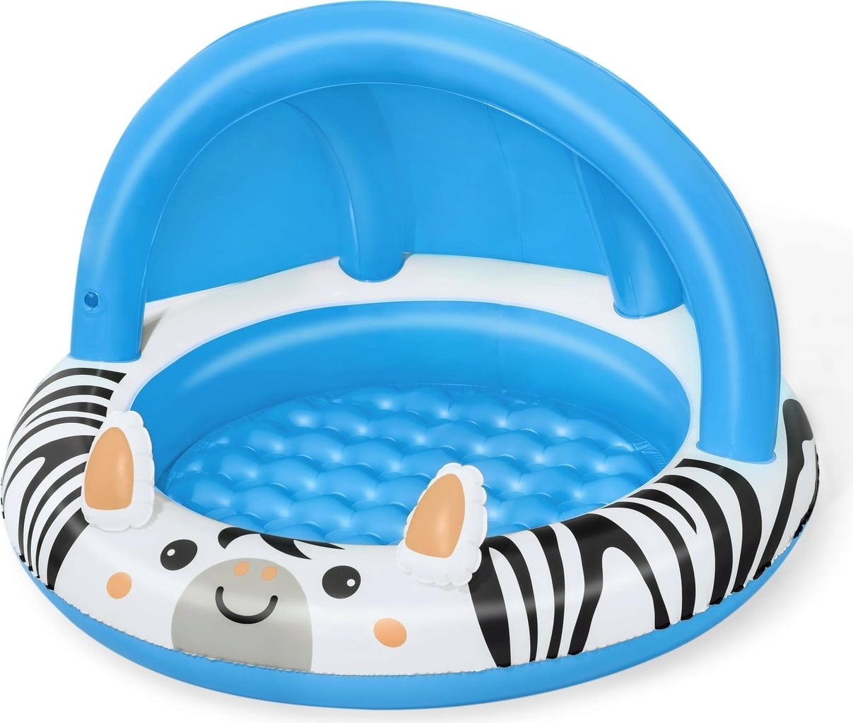С Bestway Safari Sun надуваем басейн, малките изследователи над две години могат да изживеят своите първи водни приключения! Приятният дизайн с зебра веднага създава добро настроение, а надуваемият UV-Careful™ слънцезащитен покрив осигурява великолепна сянка.