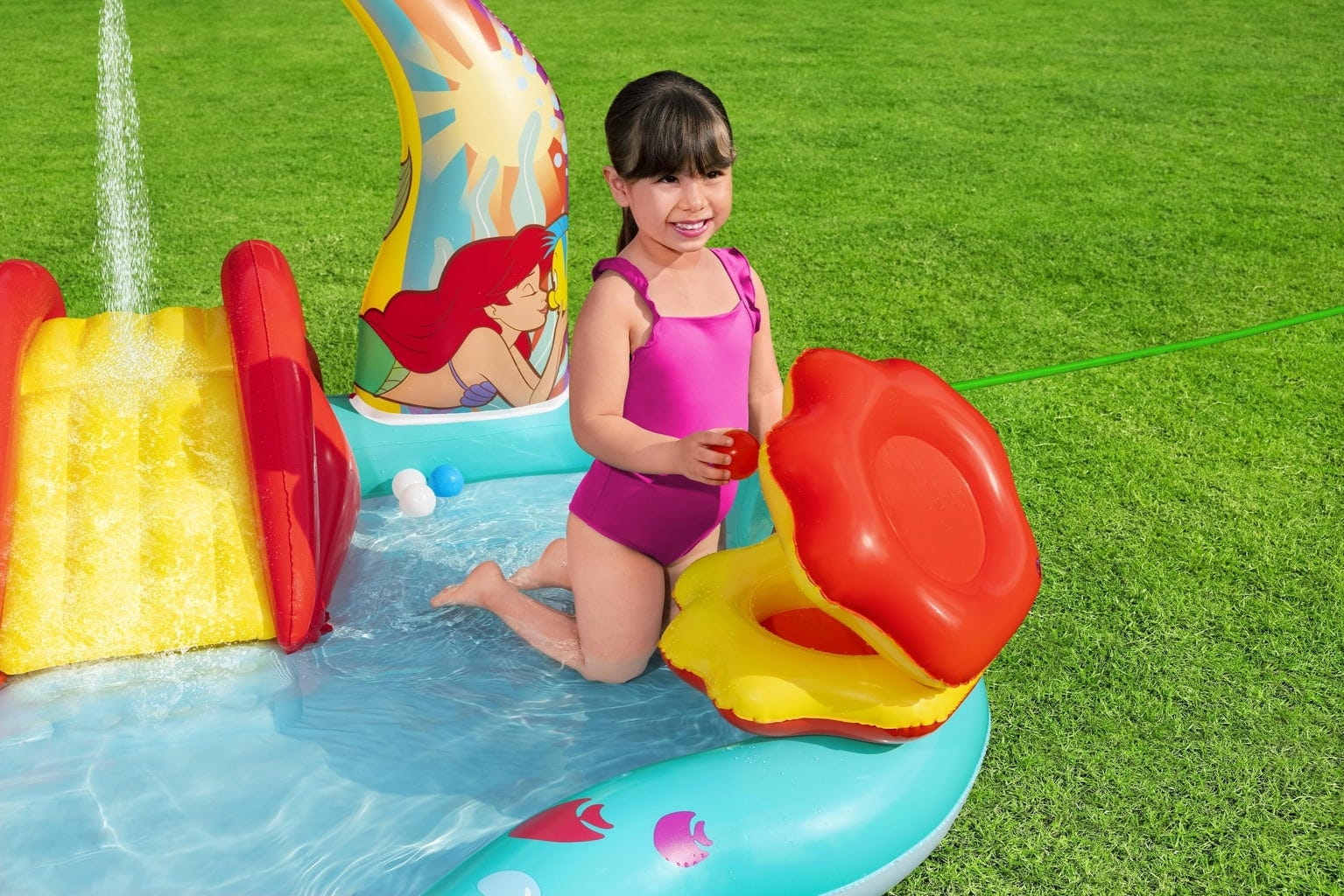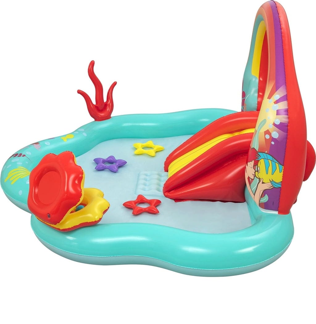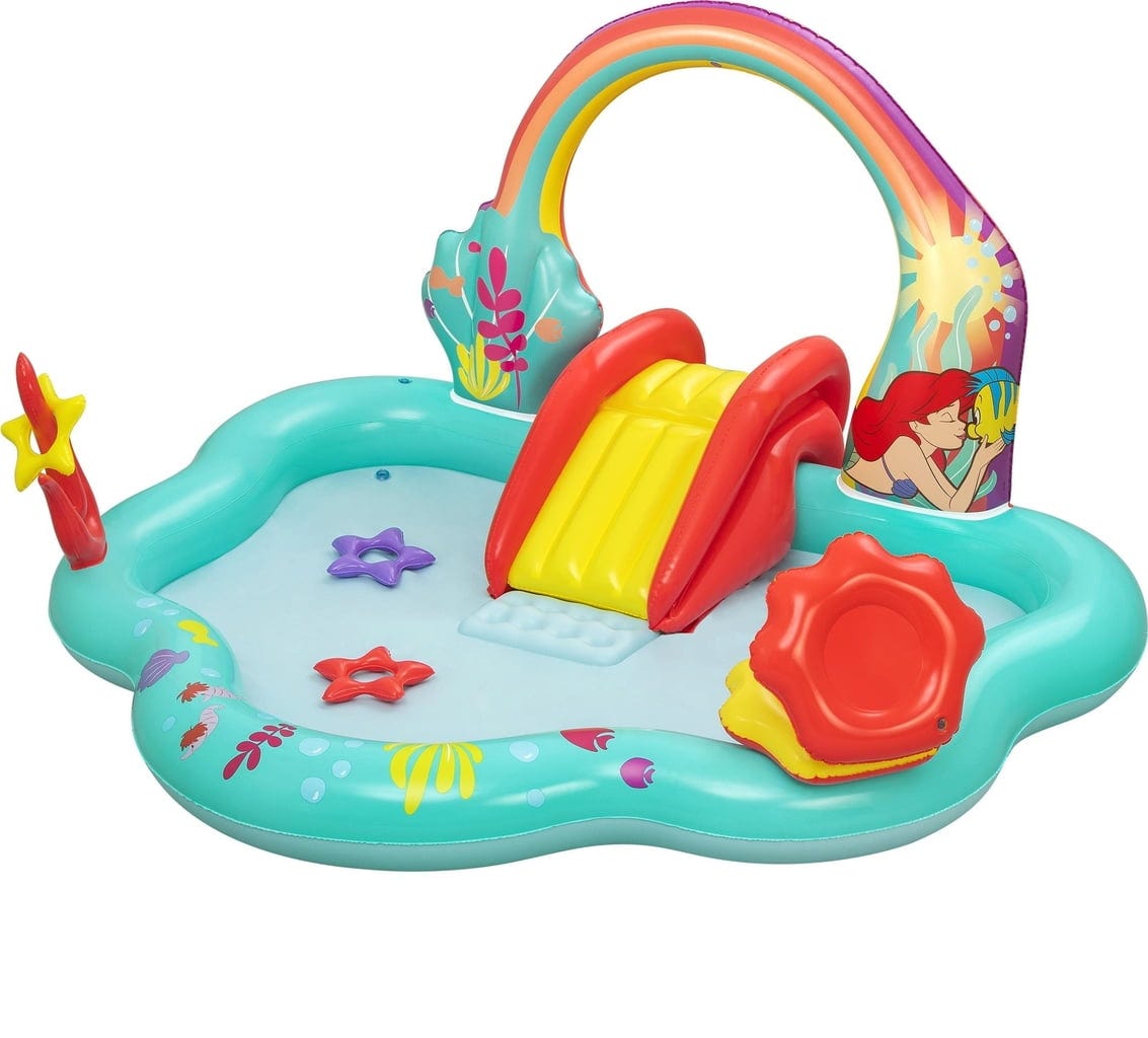 С Disney игрално водно центърче "Малката русалка" на Bestway лятото се превръща в незабравимо изживяване. Освен със забавен воден улей, който води направо към освежаващия басейн, има и арка с вградени водни спринклери – идеална за разхлаждане в горещите дни.