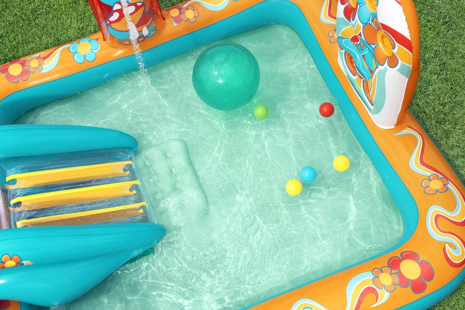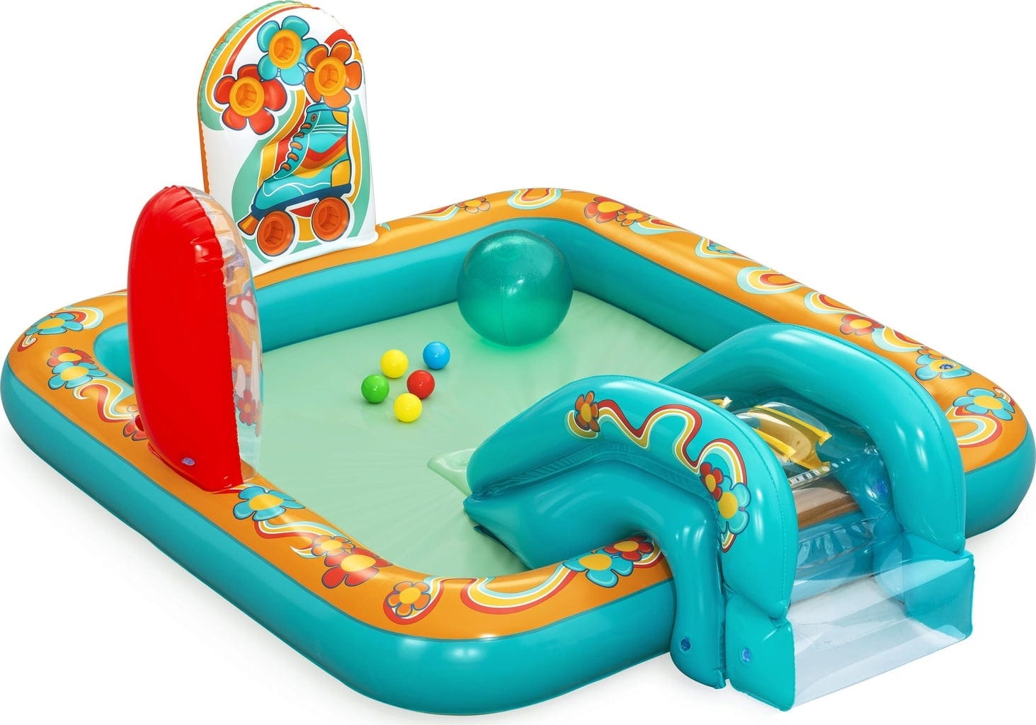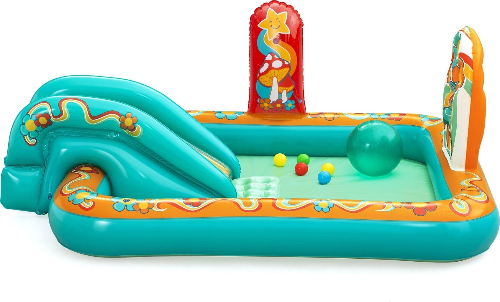 С Bestway водния център за игра Retro-Welt, вие можете да пренесете очарованието на отминалите дни директно у дома! Този просторен център за игра с воден капацитет от 189 литра предлага достатъчно място за освежаващи приключения в носталгичен стил. Изработен от здрав PVC, той издържа и на диви ретро партита!