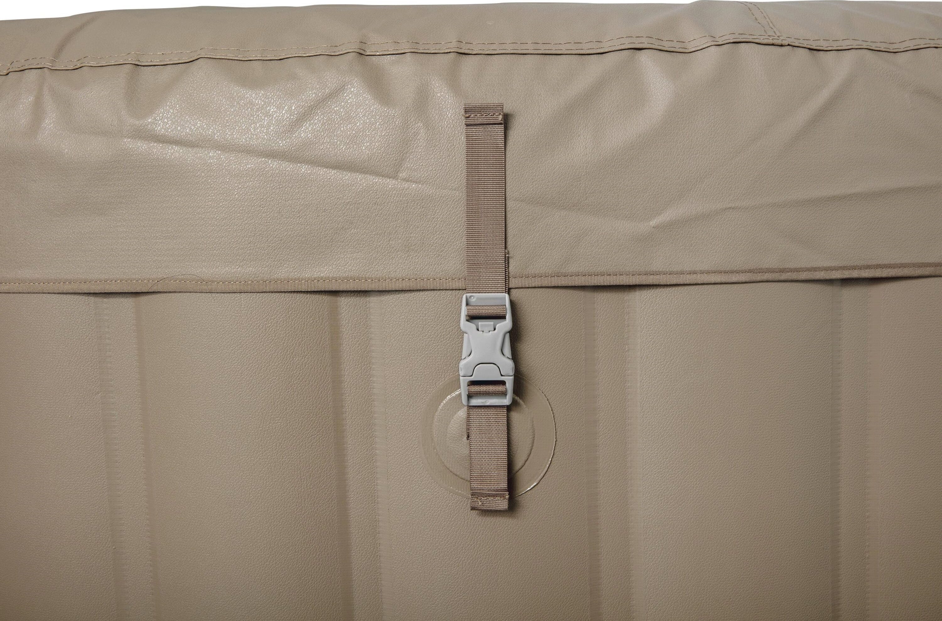 Позволете си и на вашите близки заслужена почивка от висок клас в LAY-Z-SPA® Palm Springs AirJet от Bestway! Със своя щедър диаметър тази хидромасажна вана предлага достатъчно място за до шест души, които могат да релаксират заедно в топла вода до 40 °C. За перфектното ваканционно усещане се грижи искрящият масаж от 140 AirJet™ дюзи, а стилният дизайн в цвят таупе и под с изискана каменно мозаична визия го правят визуално забележителен. В същото време, здравата конструкция от трислоен материал TriTech® и иновативната вътрешна структура MaxHold™ гарантират постоянна форма стабилност.