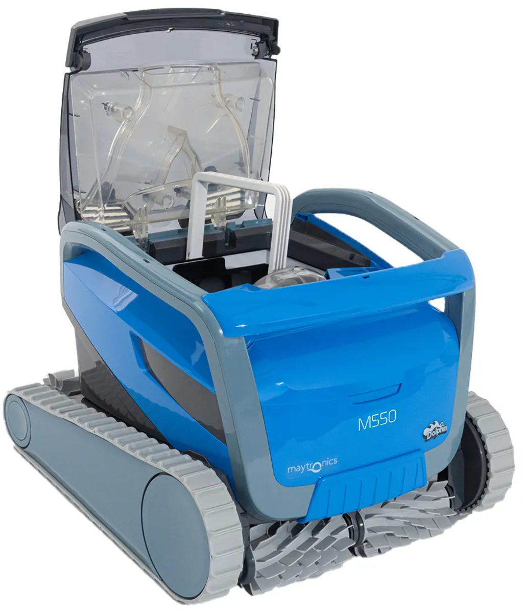 С пулробота M550 лесно и старателно почиствате вградения си басейн. Съвременният асистент самостоятелно се грижи за дъното, стените и водната линия на басейна. С приложението MyDolphin™ Plus устройството може да бъде управлявано по всяко време, а също така е възможно да се настроят фиксирани времена за почистване.