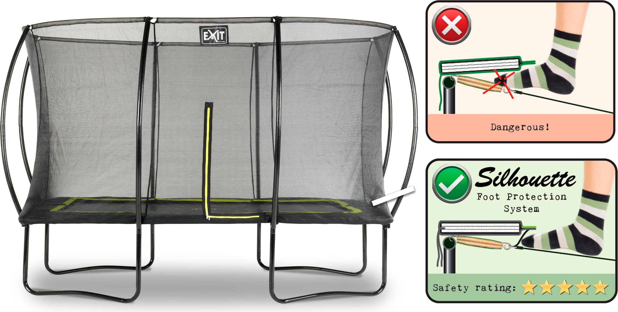 Родителите не искат да се тревожат за безопасността на своите деца. С трамплина EXIT Toys Silhouette на четири метални W-образни крака децата изживяват перфектно удоволствие от скачането с максимална безопасност.