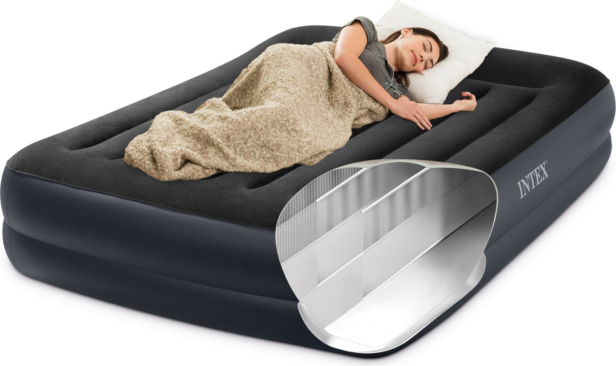 Топ продукт от марката Intex, който предлага изключителен комфорт по време на сън благодарение на патентованата FiberTechTM технология и интегрираната възглавница. Интегрираният електрически компресор QuickFill® осигурява готовност на леглото за няколко минути – особено удобно, когато неочаквани гости пристигнат. След употреба, надуваемото легло може лесно и бързо да се сгъне и компактно да се съхрани.
