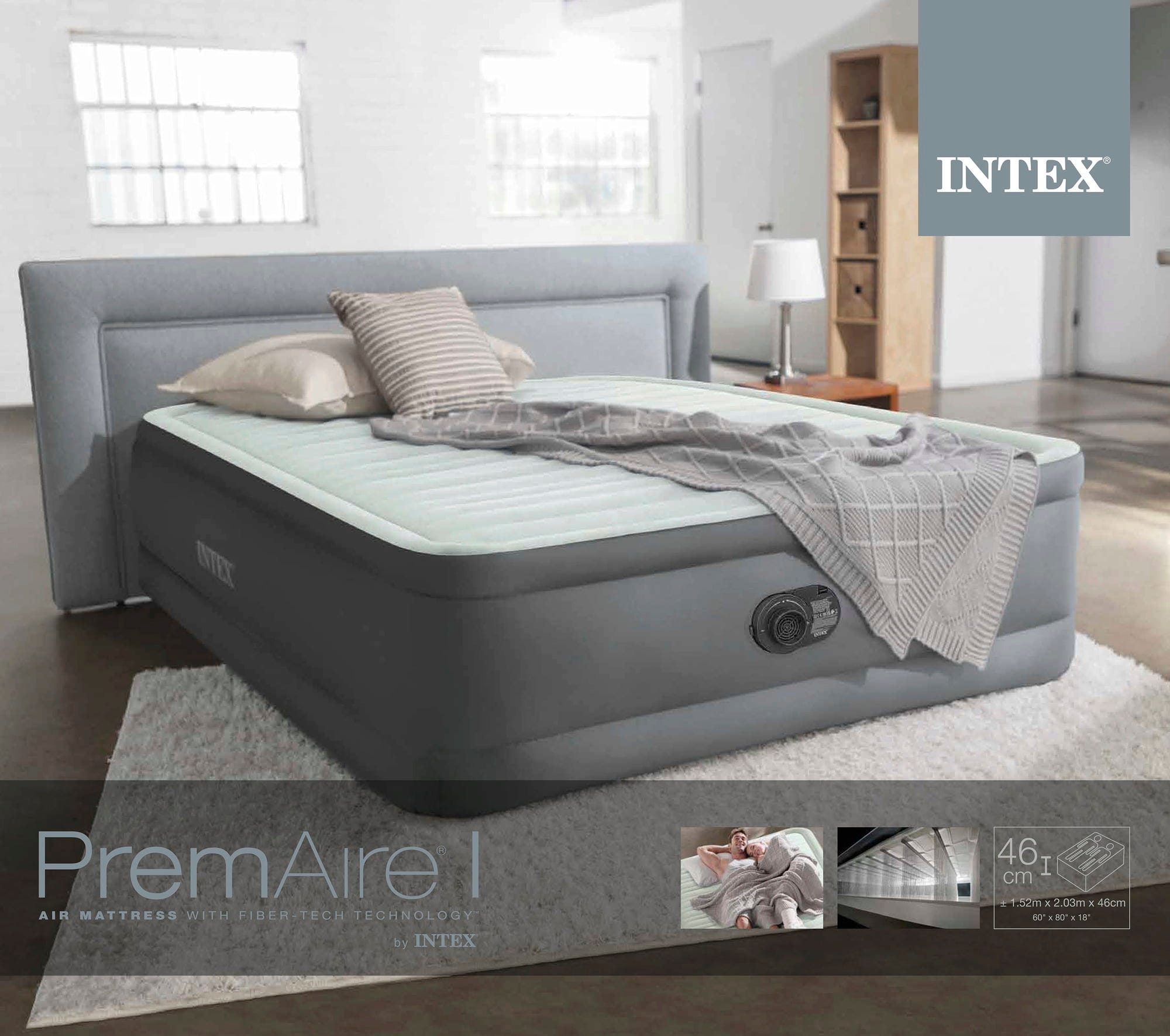 Intex Надуваемо легло PremAire I Queen 203 x 152 x 46 см