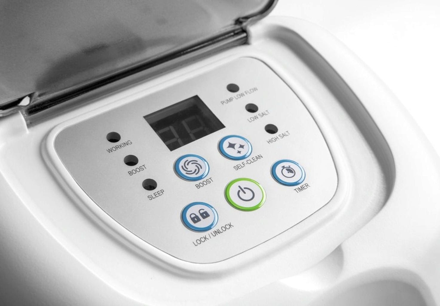 Необходимото количество сол (чист натриев хлорид или морска сол) е 2,5 - 3,5 г на литър вода. За оптимална функция, производителността на филтърната помпа трябва да бъде между 1,136 - 3,785 л/ч. Солното устройство предлага няколко режима на самопочистване – можете да избирате между 6, 10 и 14-часови цикли.
