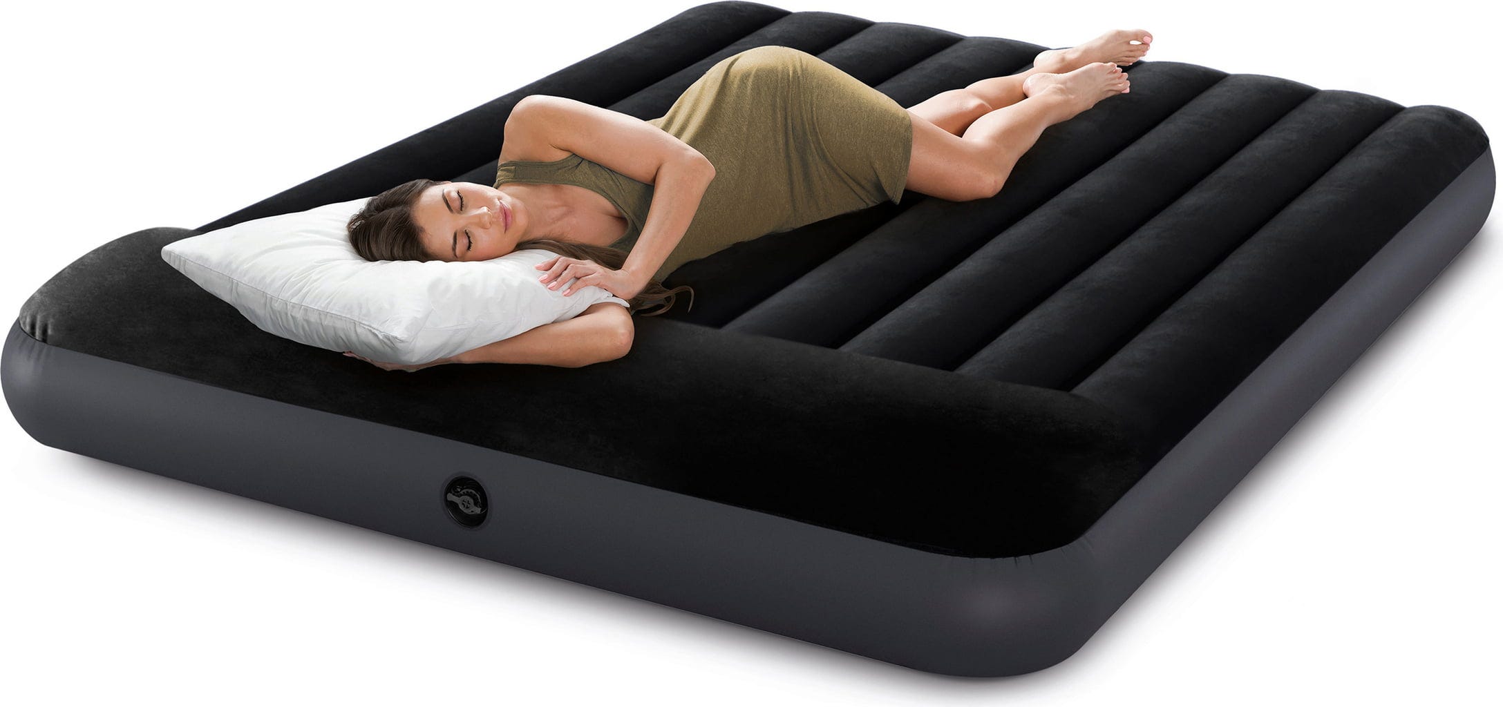 Достатъчно здраво за приключения на открито и практично компактно за интериори - точно това предлага този висококачествен въздушен матрак. Fiber-TechTM вътрешната конструкция му придава изключителна стабилност и дълготрайност, докато кадифено-меката велурова повърхност и интегрираната възглавница осигуряват приятно сънно климатизиране и релаксиращо съново изживяване като в истинско легло.