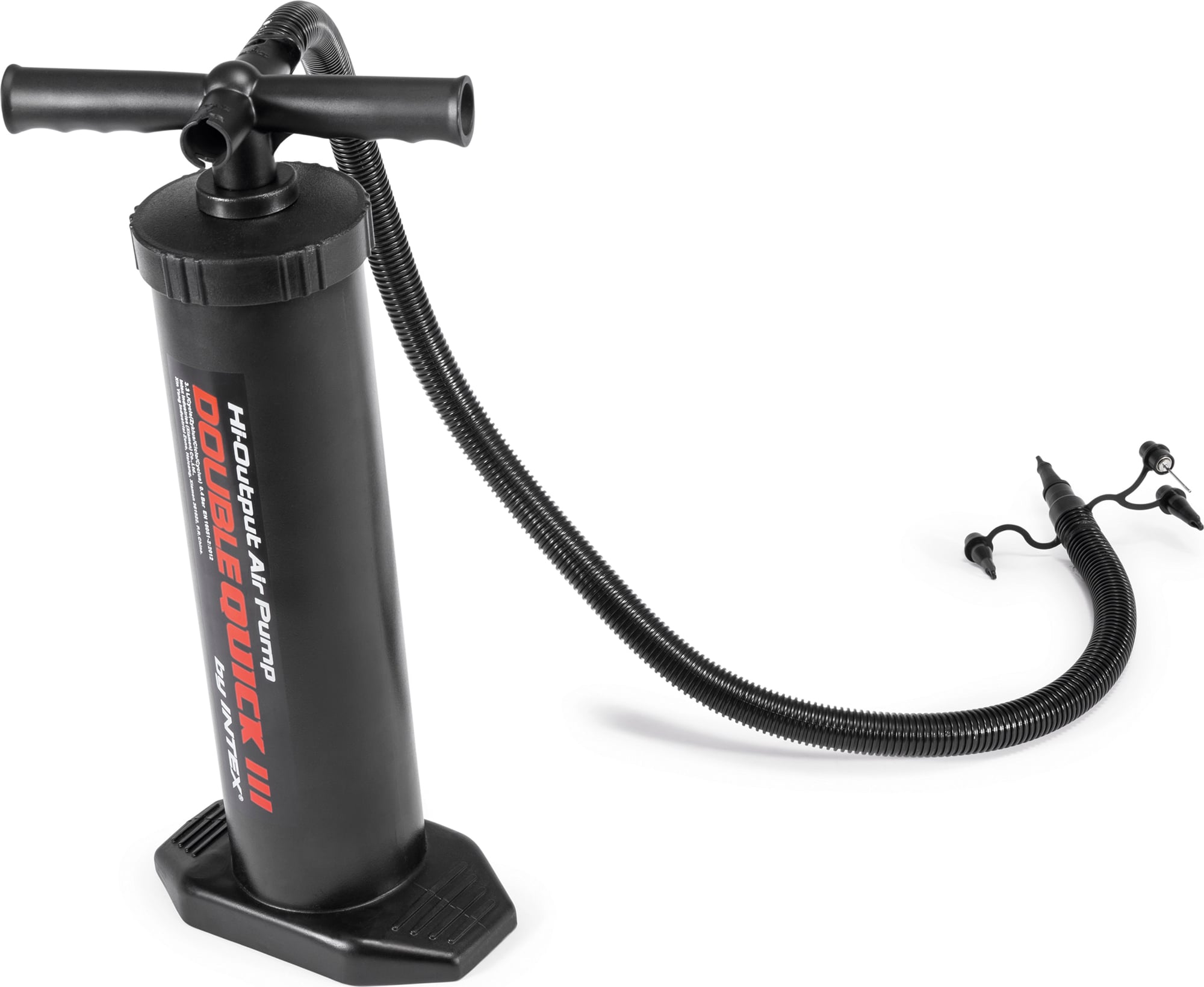 Високоефективна въздушна помпа INTEX с височина 48 см за бързо напомпване или източване на надуваеми артикули. В комплекта е включен гъвкав маркуч с 4 различни накрайника. Максимално налягане 12 psi, въздушен обем макс. 4,39 л/ход
