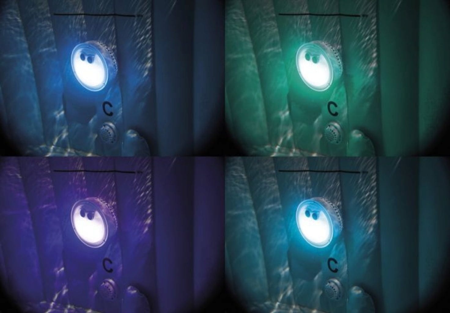 Комплект с басейн, подложка за пода, заключващо се покритие, 2 облегалки за глава Intex, многоцветно LED осветление, филтърна помпа, 1 филтърна касета (тип S1)
