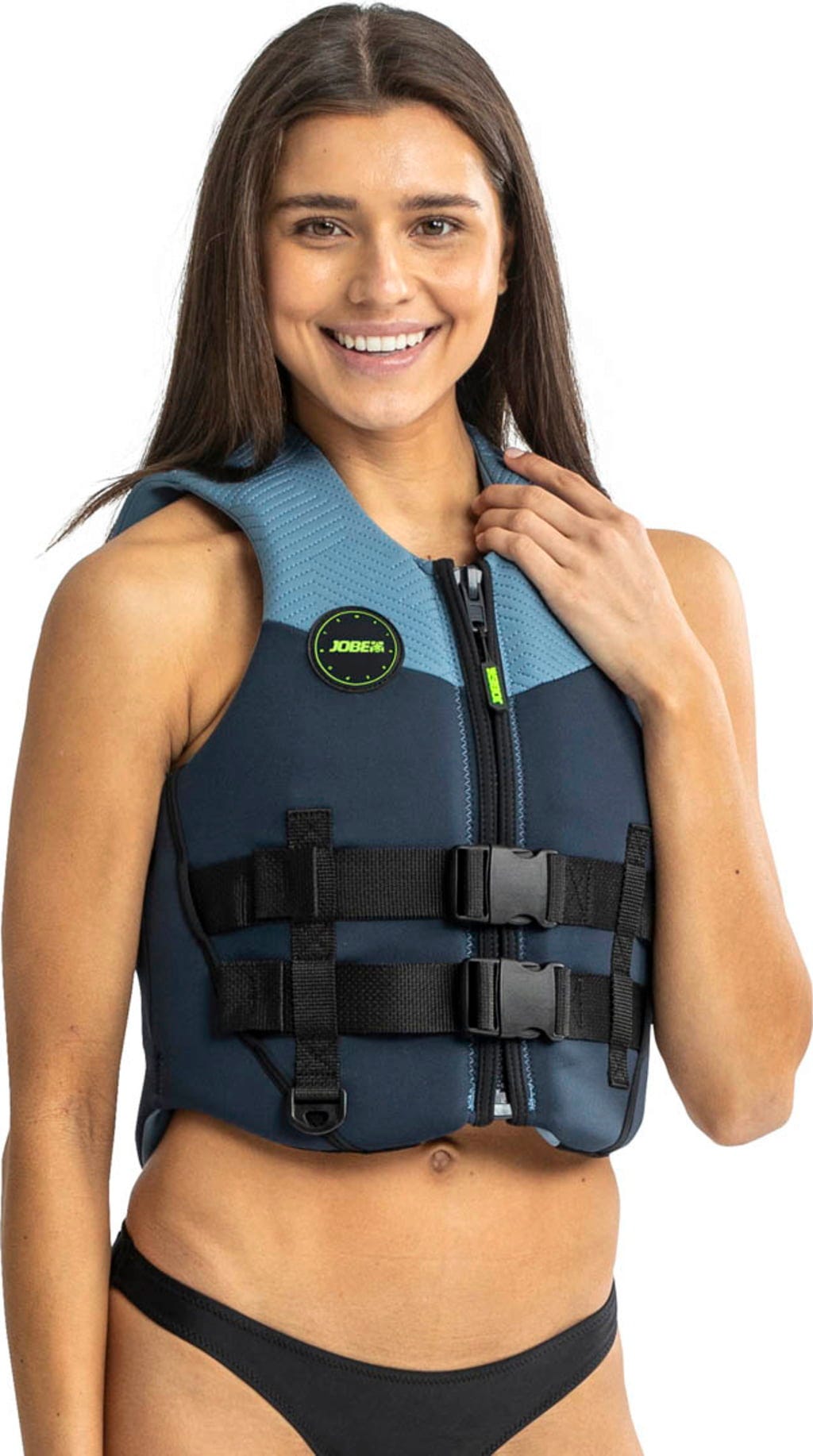 Невероятният комфорт на тази спасителна жилетка е наистина завладяващ. Гъвкав неопрен, мека PVC пяна и къса кройка допринасят за комфорта на аксесоара JOBE. Отпред има висококачествен YKK цип.