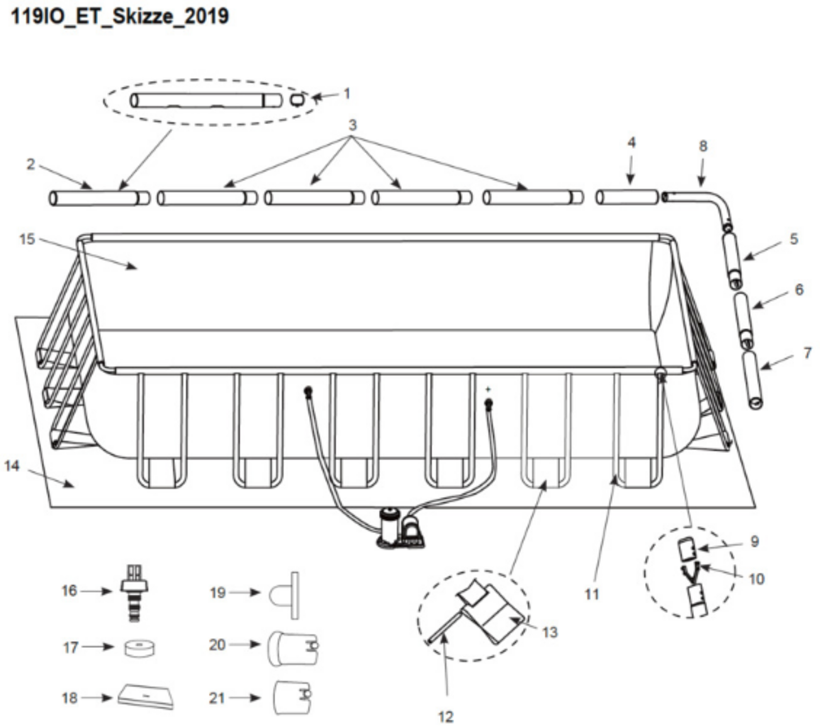 Резервни части Intex Frame Pool Ultra Quadra XTR 549 x 274 x 132 cm, (9) Крайна капачка U-образни странични носачи