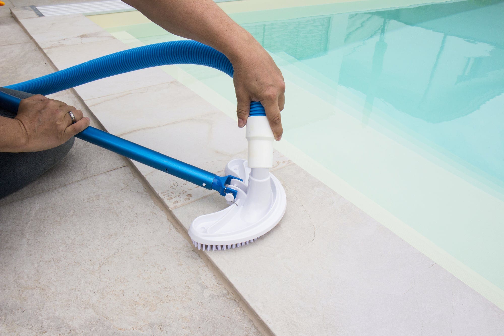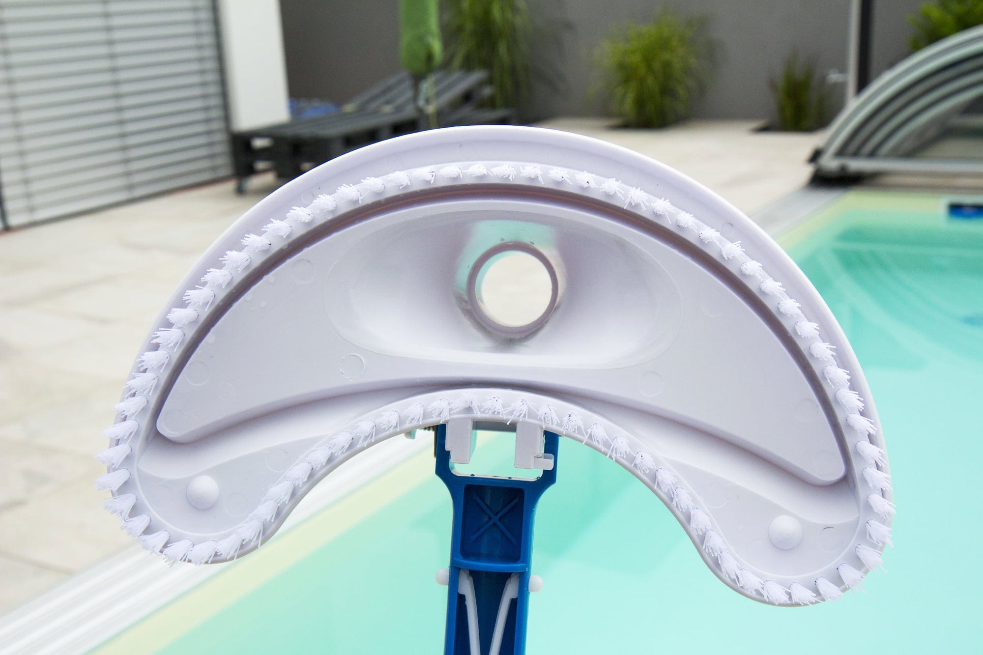 Входът за засмукване е подходящ за всички стандартни басейнови маркучи с Ø 32/38 мм. Чрез маркуча замърсяванията се абсорбират с помощта на филтърна помпа. Производителността на помпата трябва да бъде поне 4.500 л/ч. Уредът може да се използва за всички форми на басейни.
