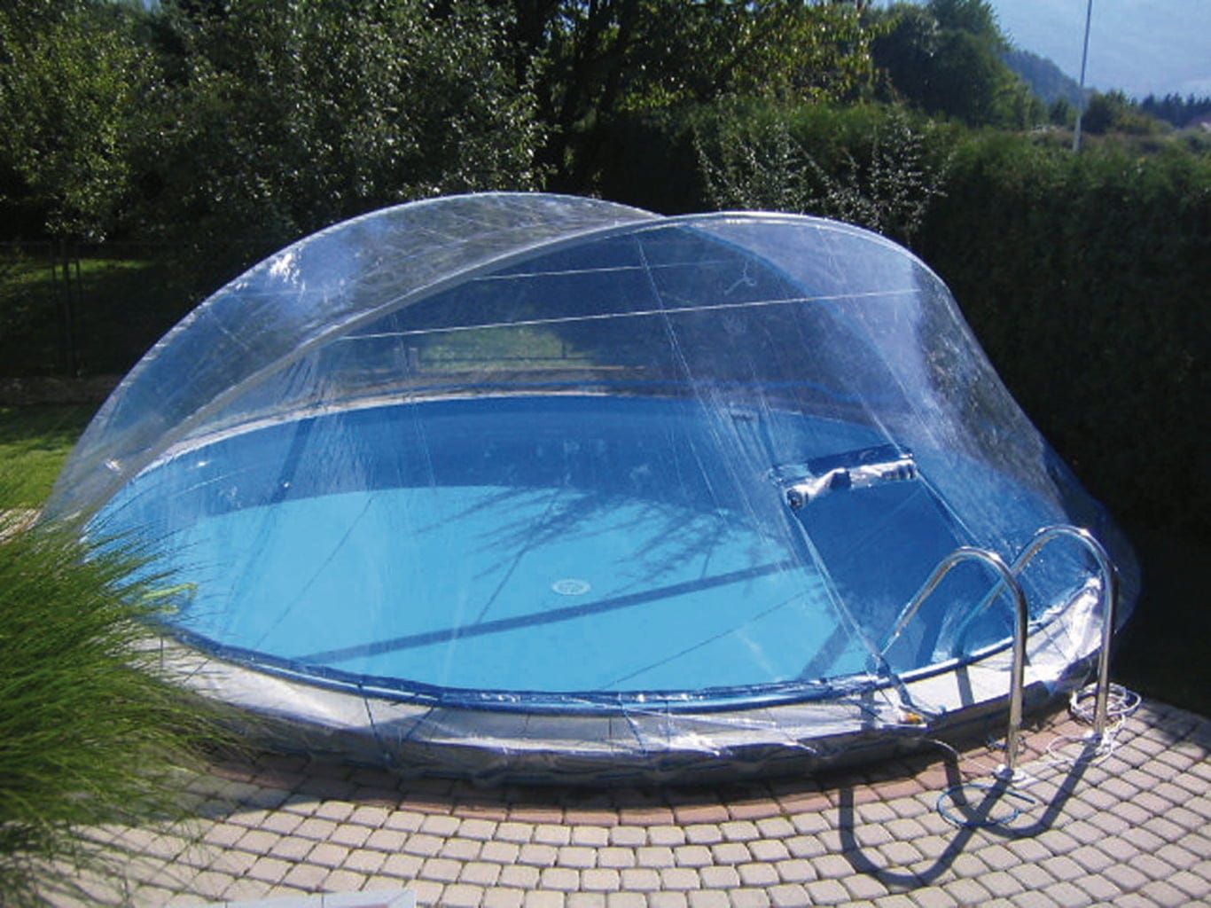 С кабрио купол валежите няма да ви попречат и плувният сезон може да се удължи значително. Куполът загрява водата по-бързо и намалява нуждата от почистване. Тази версия на покритието е подходяща за почти всички видове стоманени басейни. Името 'Кабрио купол' идва от сгъваемите шарнири от двете страни, които позволяват покривът да се прибира като кабрио. Кабрио куполът се предлага в различни размери.