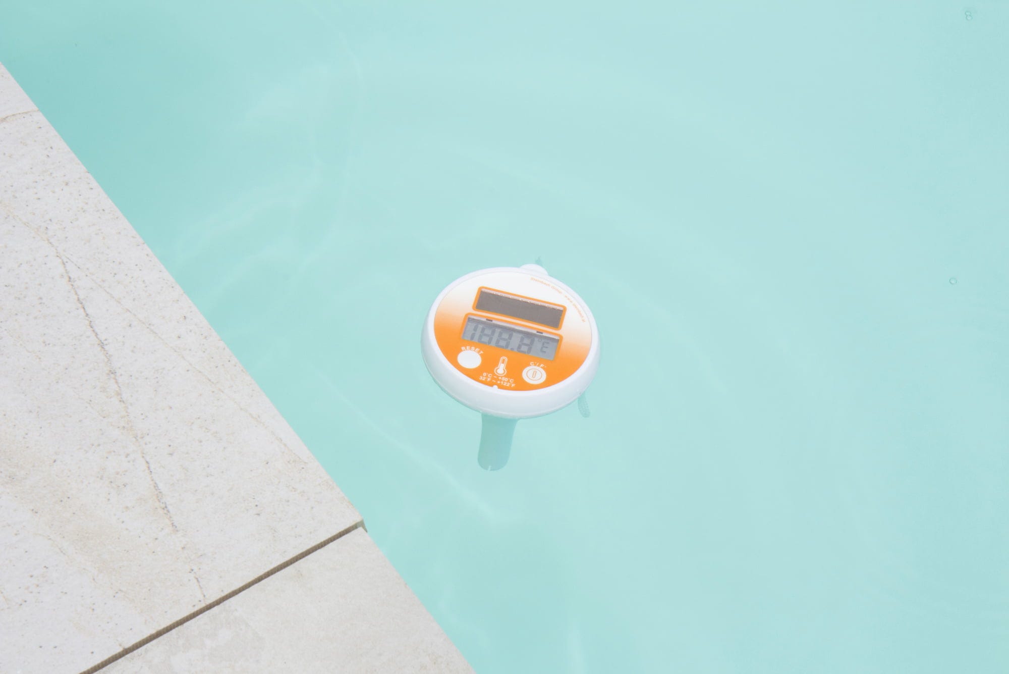 Плаващият, соларно захранван термометър за басейн с голям дисплей, който може да показва температурата в °C и °F