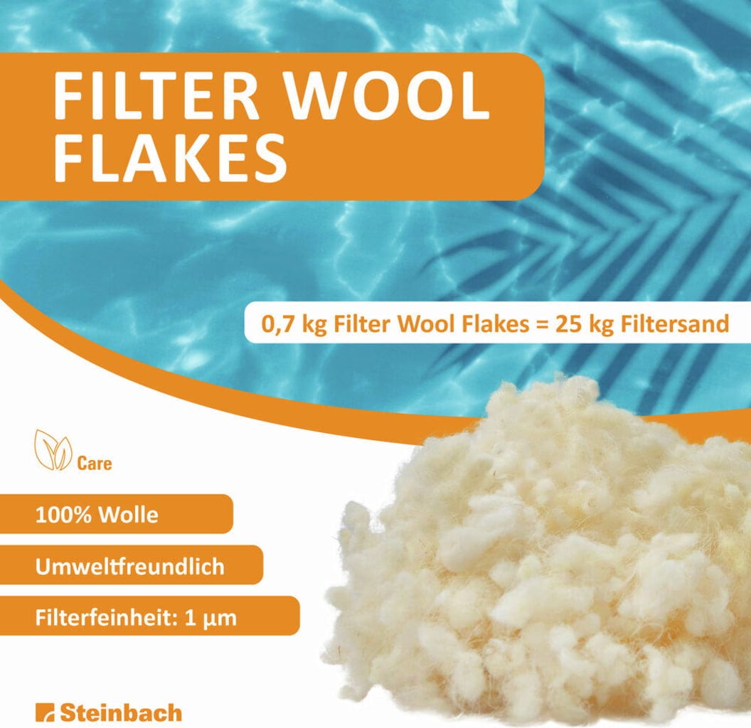 Само 0.7 кг вълнени филтърни люспи съответстват на капацитета на 25 кг пясъчен филтър и предлагат впечатляваща филтрационна ефективност! Люспите са лесни за употреба, подходящи са и за солена вода и имат филтрационна финост от 1 μm, както и впечатляваща способност за задържане на замърсявания от 500% от собственото си тегло.