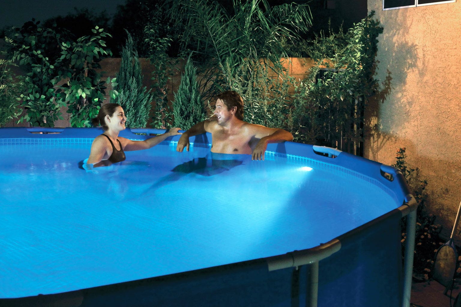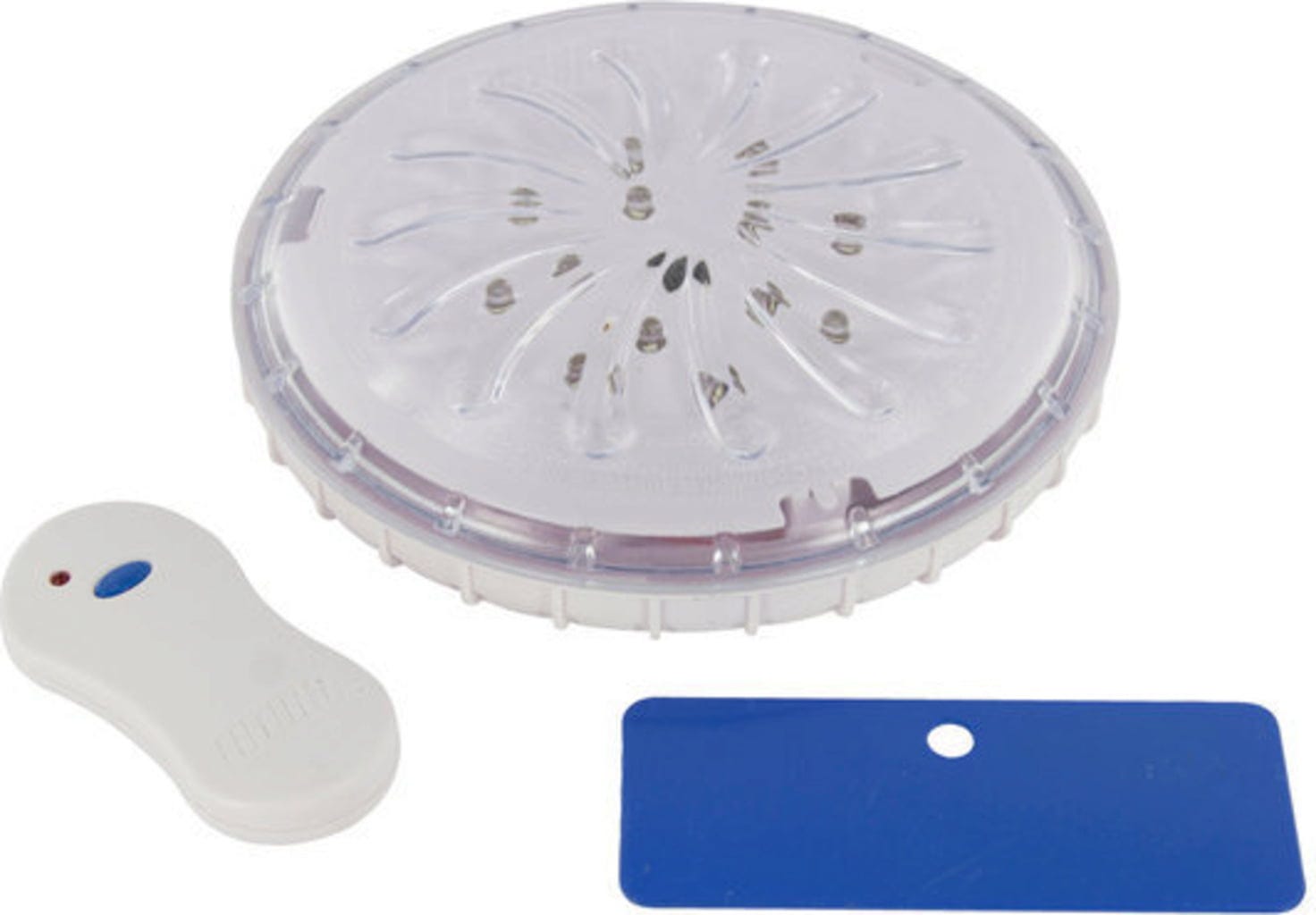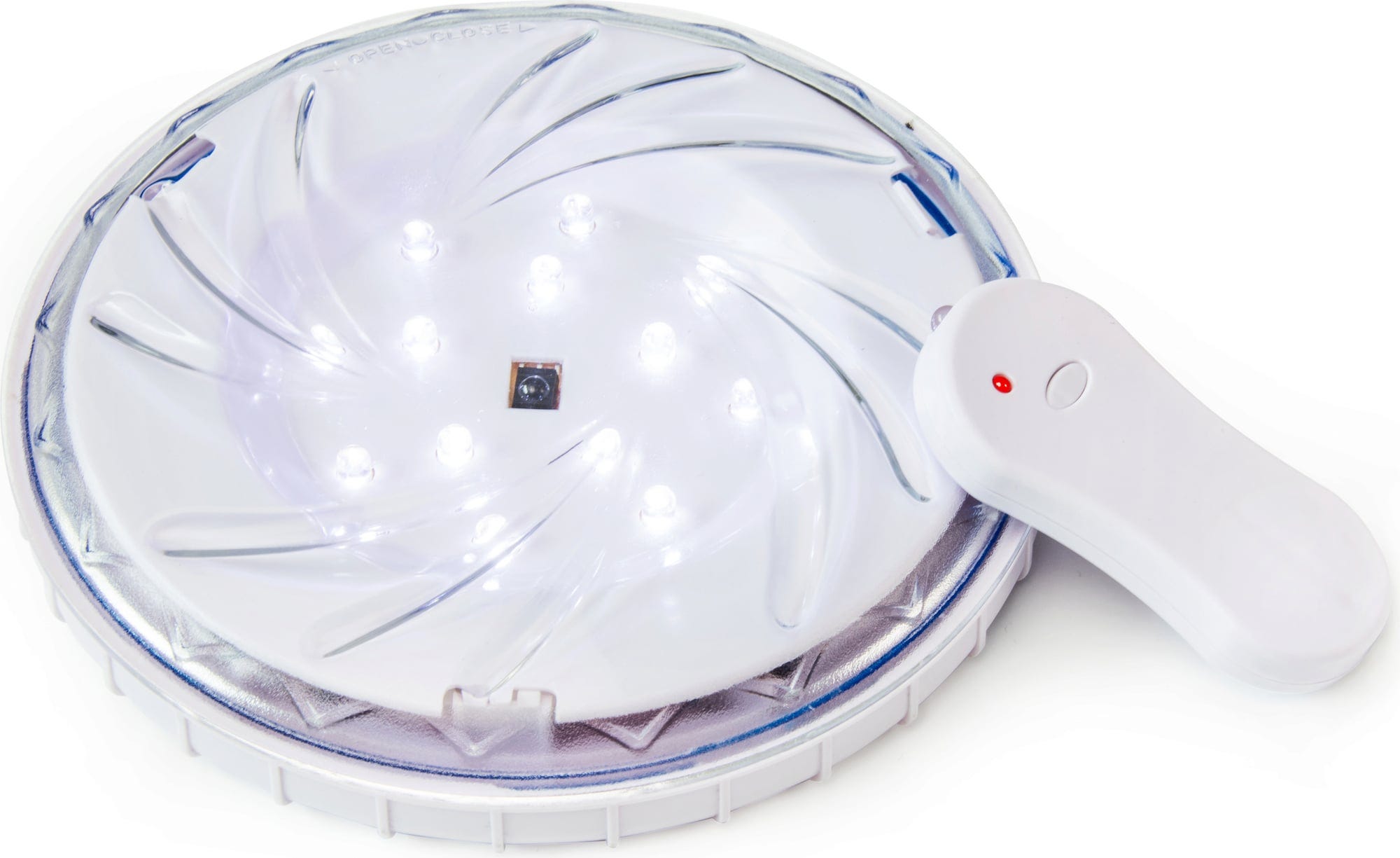 Независимо дали се използва във водата или на терасата, LED осветлението за басейн с дистанционно управление може да се прилага навсякъде. 13-те дълготрайни LED светлини осигуряват оптимално осветяване. Могат да се избират две нива на яркост. Интегрираният магнит предоставя безброй възможности за монтаж. За да се гарантира работата с дистанционно управление в басейна, осветлението трябва да се намира на максимум 25 см под повърхността на водата. Захранването се осигурява от 3 бр. AA батерии (не са включени в комплекта).