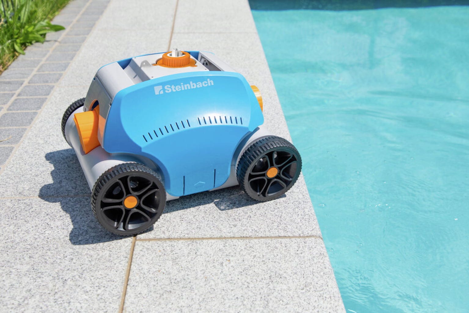 Poolrunner Battery+ от Steinbach е напълно автоматична, захранвана от батерии подова прахосмукачка за басейни с плоско дъно. Уредът за почистване има вградена акумулаторна батерия и може да се използва за басейни до 80m 2 на максимална дълбочина 2m.