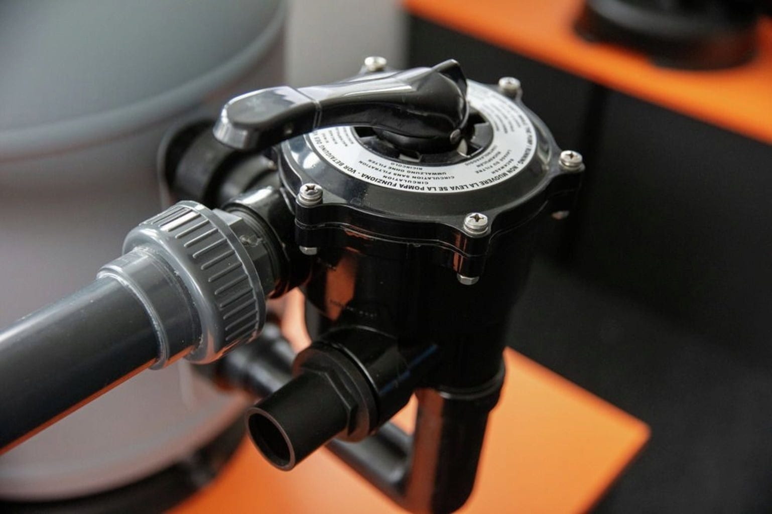 Чрез 6-пътния вентил се регулират различните настройки на филтърната система. Предвиден е стандартен манометър за следене на работното налягане.