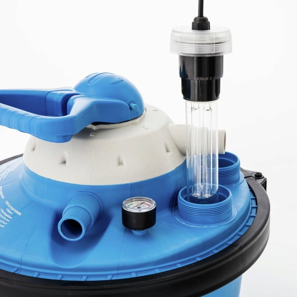 UV-системата осигурява екологично осъзната дезинфекция и се използва срещу бактерии и водорасли. Мощността на лампата е 18 вата, свързващият кабел (230 V) има дължина 6 м. За филтърните системи от серията Steinbach Comfort 75/50 и Eco 30 не е необходимо допълнително оборудване за монтаж, тъй като системата може да се завинти директно с интегрираното закрепване.
