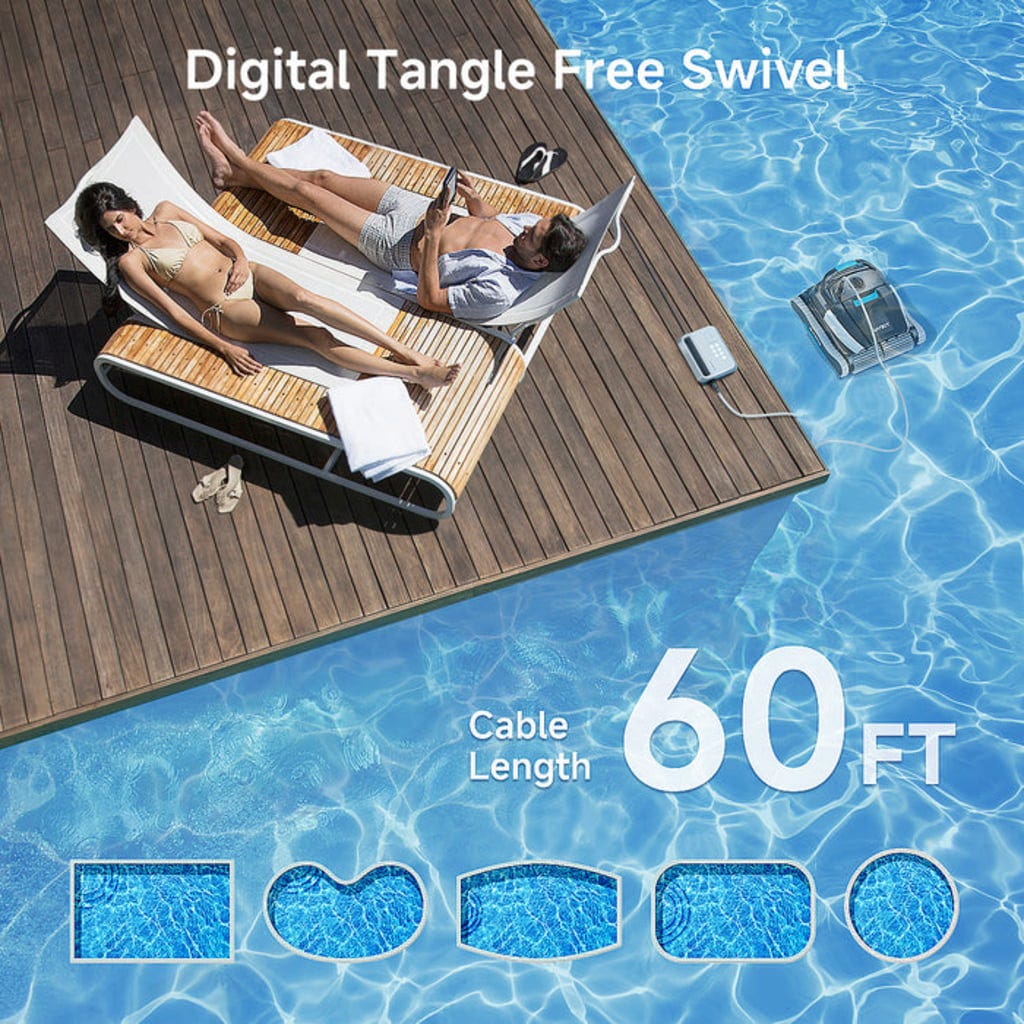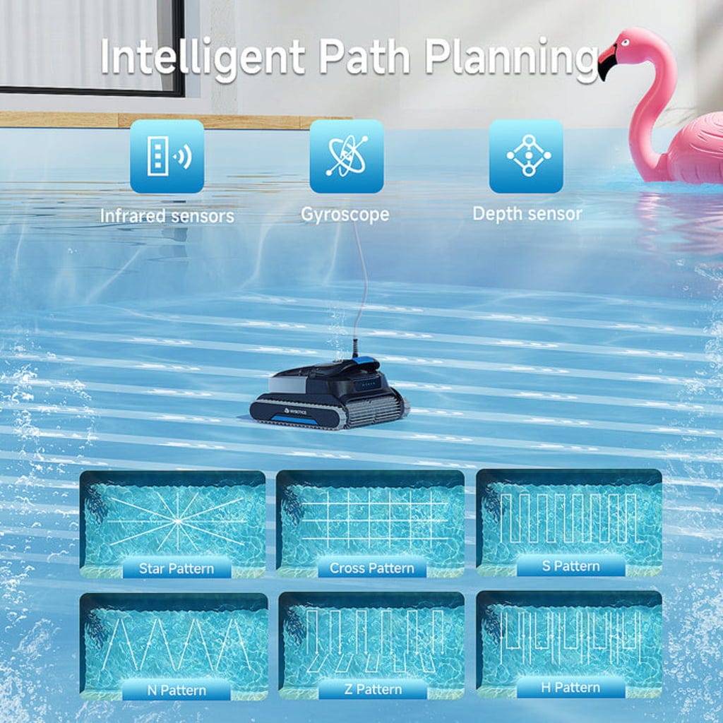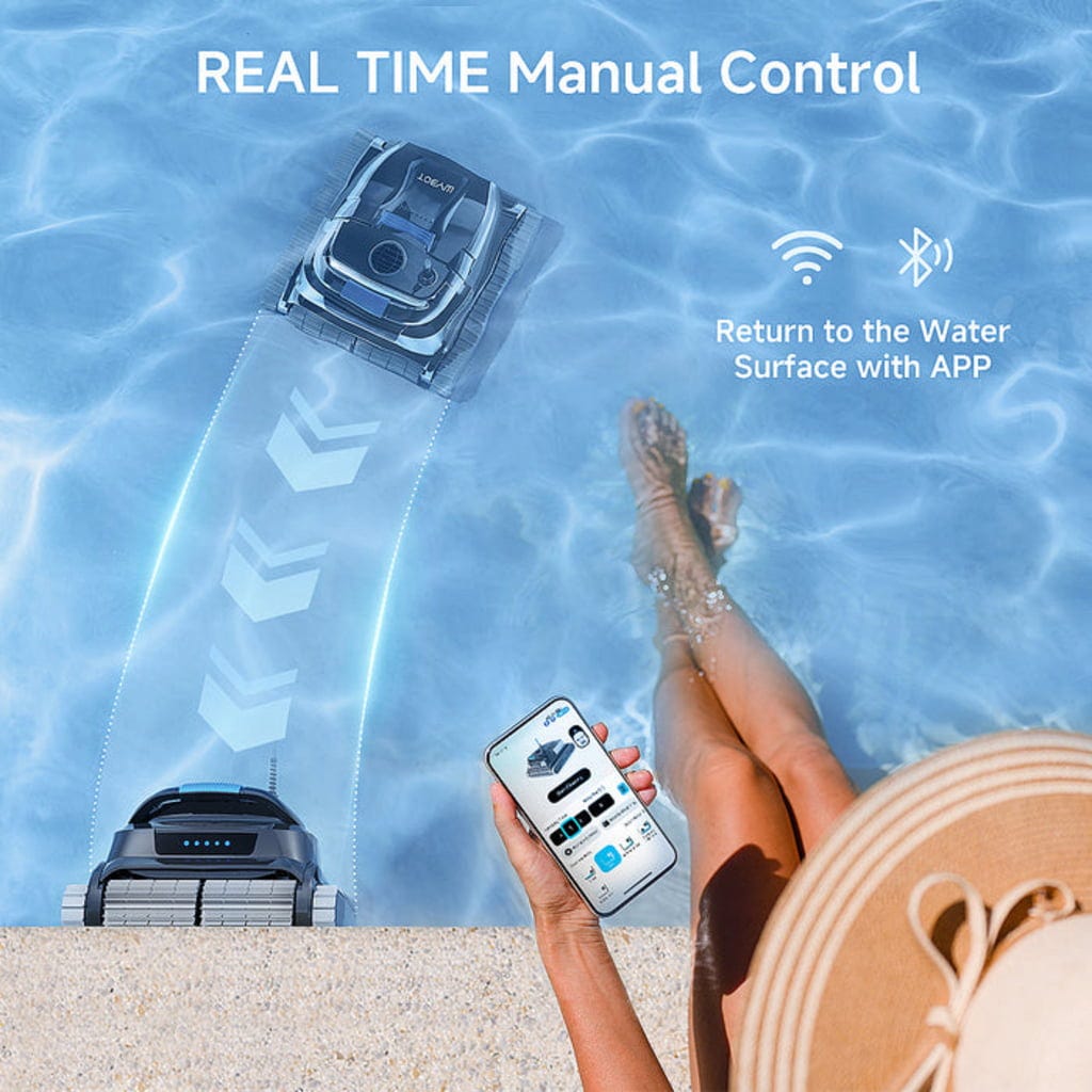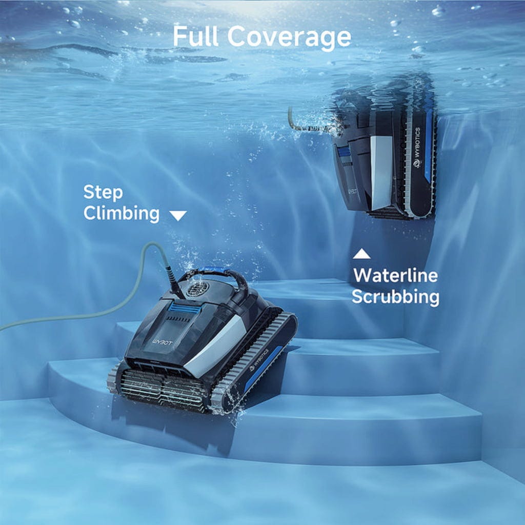 Спестете време и усилия с робот за басейн L1. Този мощен помощник автоматично се грижи за почистващата дейност на дъното, стените и водната линия на вашия басейн, за да можете да се насладите на повече време за приятните неща в живота. Особено полезно е приложението WYBOT с функция за управление, седмичен таймер, планиране на маршрут и други практични функции.