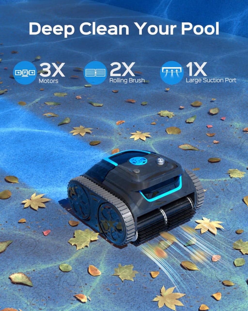 Прахосмукачката за басейн S1 се активира с един единствен клик и веднага започва да почиства дъното, стените, стъпалата и линията на водата. Нейните инфрачервени сензори и шестосов жироскоп я поддържат винаги на правилната посока. Чрез приложението WYBOT можете да изберете режими на почистване и да създадете график.