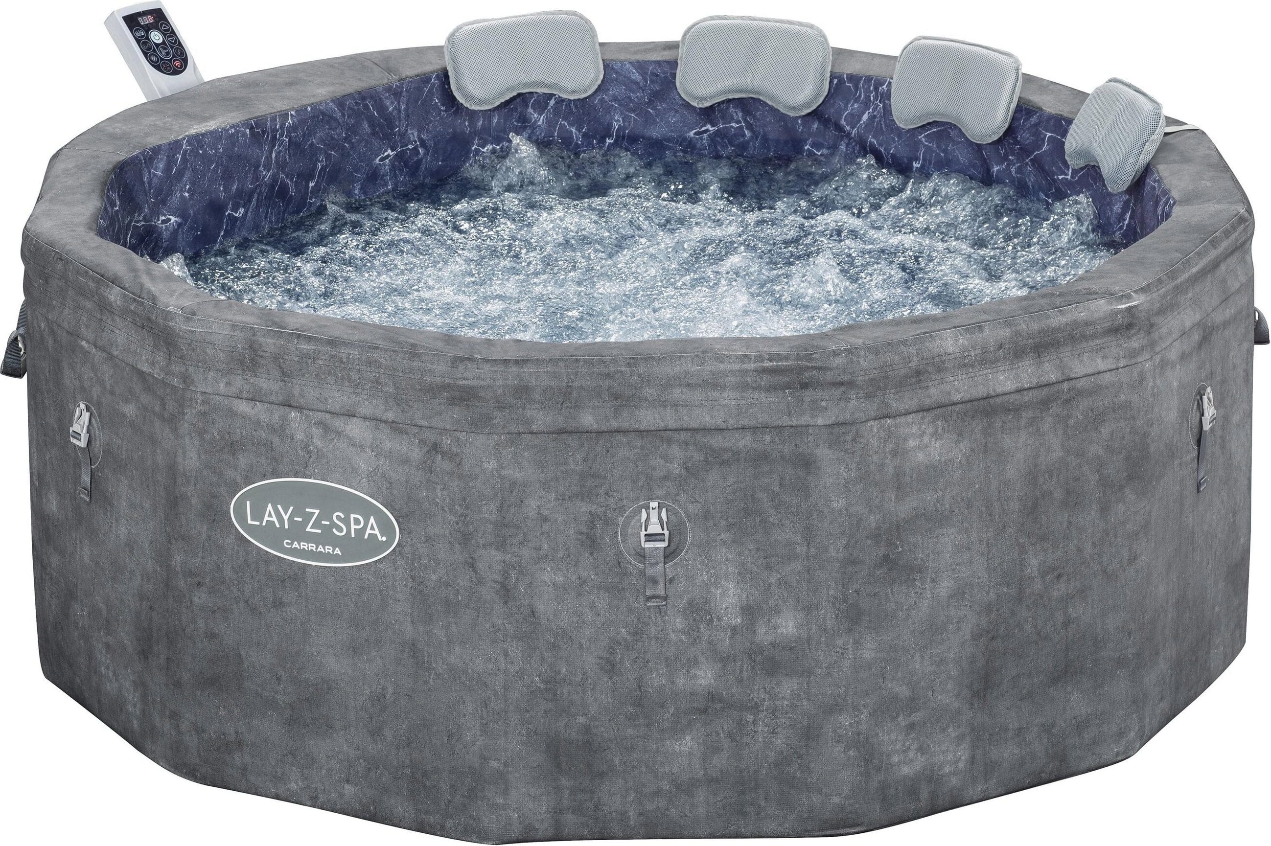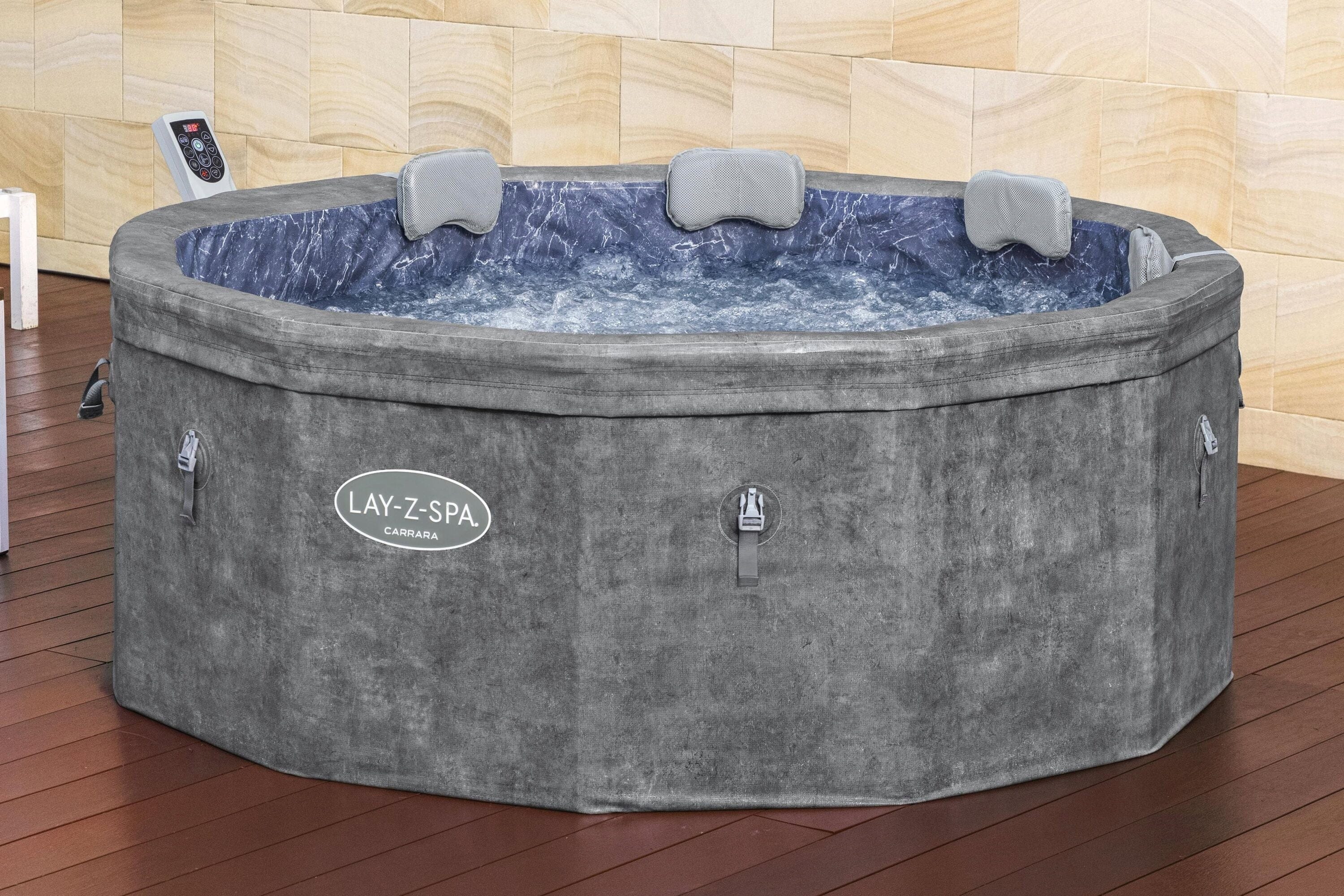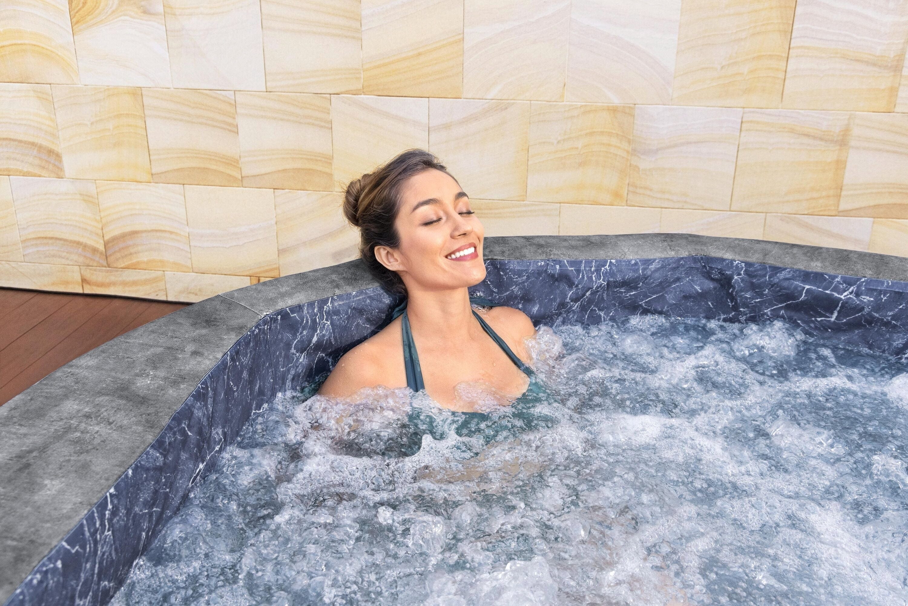 Mit dem LAY-Z-SPA® Carrara AirJet™ holst du dir puren Luxus und modernste Technik in deinen Außenbereich! Dieser Whirlpool besticht durch seine einzigartige dunkle Alabaster-Optik und eine Innenverkleidung in edlem Marmor-Design, was ihn zum absoluten Blickfang auf jeder Terrasse macht.