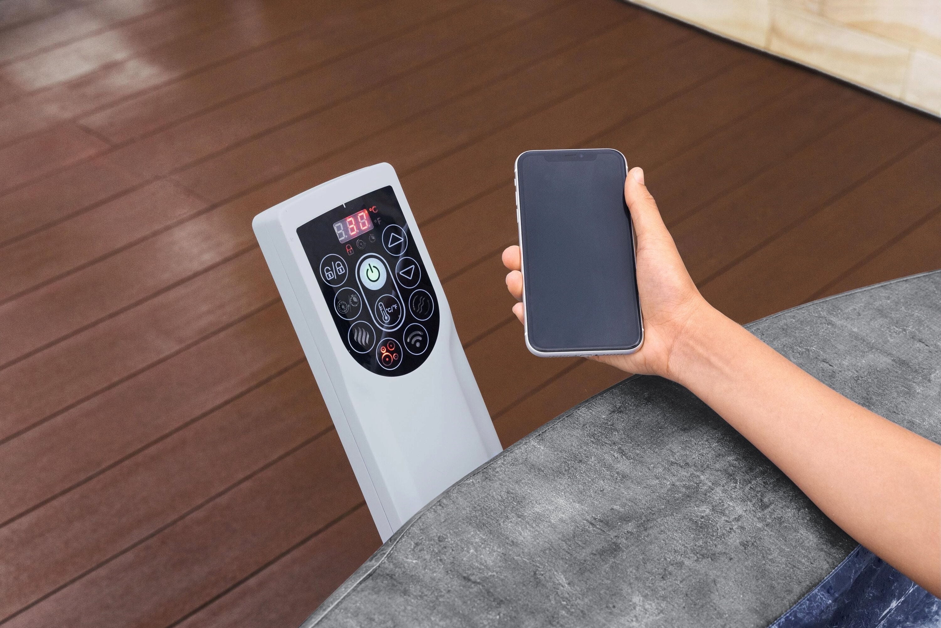 Besonders smart gelingt die Steuerung über dein Smartphone, mit dem du Heizung und Massage bequem per App verwaltest – sogar bis zu 40 Tage im Voraus planbar. Dank der integrierten Frostwächter-Technologie musst du dir auch im Winter keine Sorgen machen, da das System das Wasser automatisch vor dem Einfrieren schützt. Erlebe eine neue Dimension der Entspannung, die durch den einfachen, werkzeuglosen Aufbau und die platzsparende UltraFit™-Pumpeneinheit perfekt abgerundet wird!