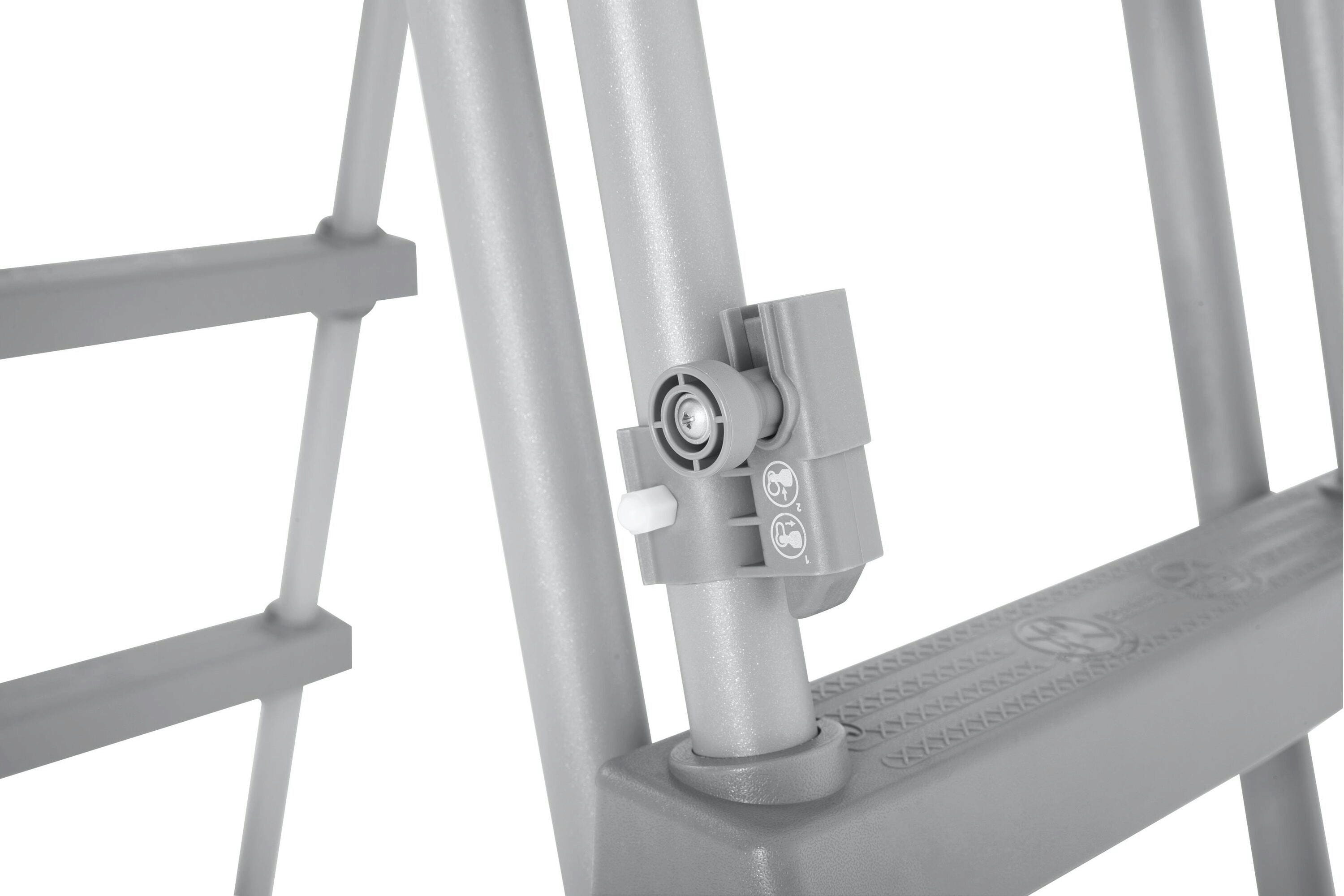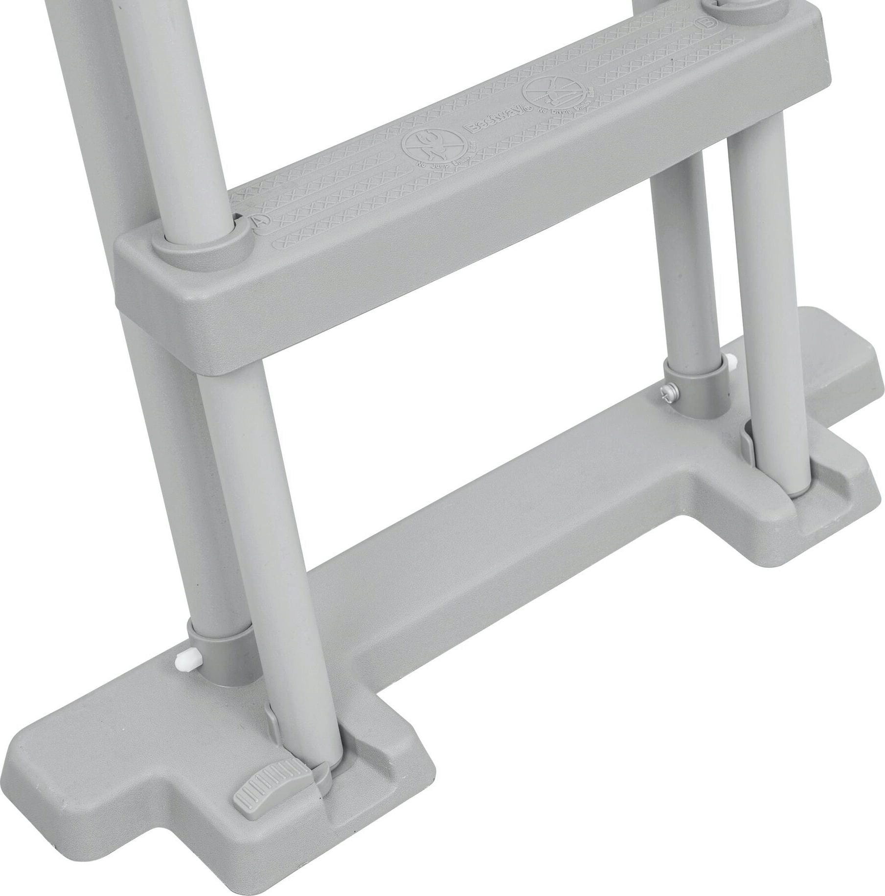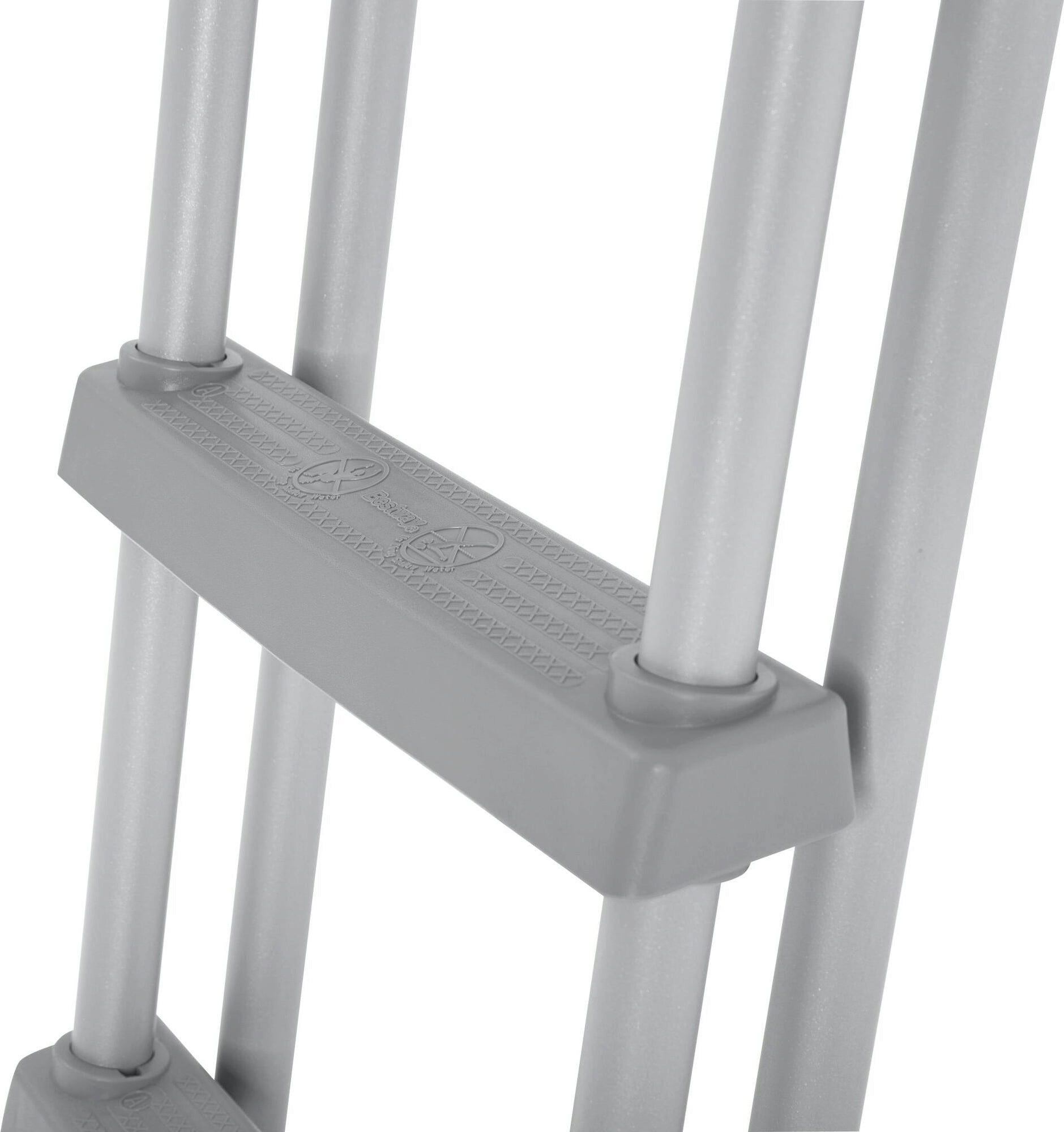 Mit der grauen Bestway® Sicherheitsleiter schaffst du die ideale Verbindung zwischen Garten und kühlem Nass! Diese Leiter wurde speziell für Aufstellpools bis zu einer Höhe von 122 cm entwickelt und überzeugt durch ihre extrem stabile Stahlrohrkonstruktion, die dank einer speziellen Beschichtung bestens gegen Korrosion geschützt ist.