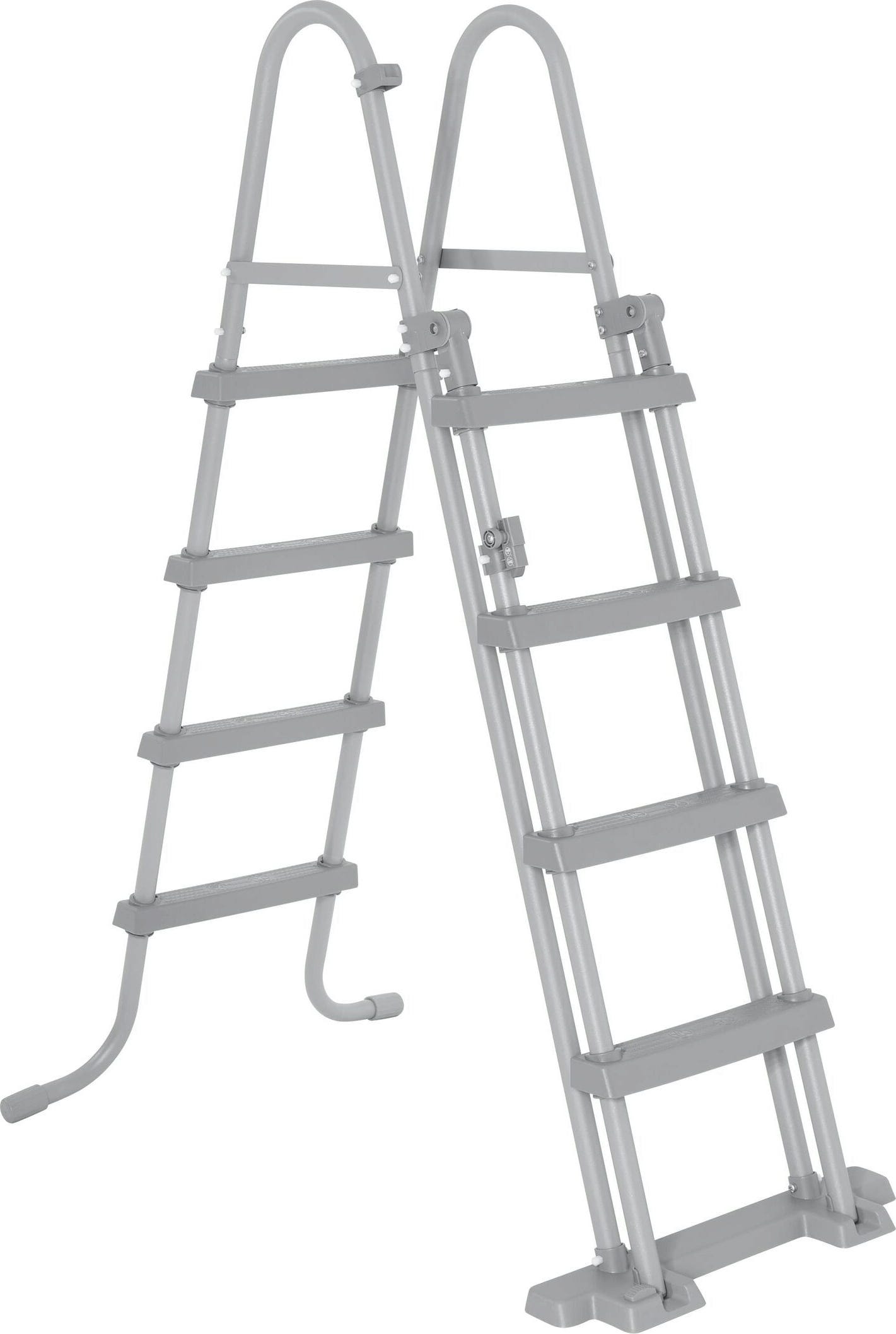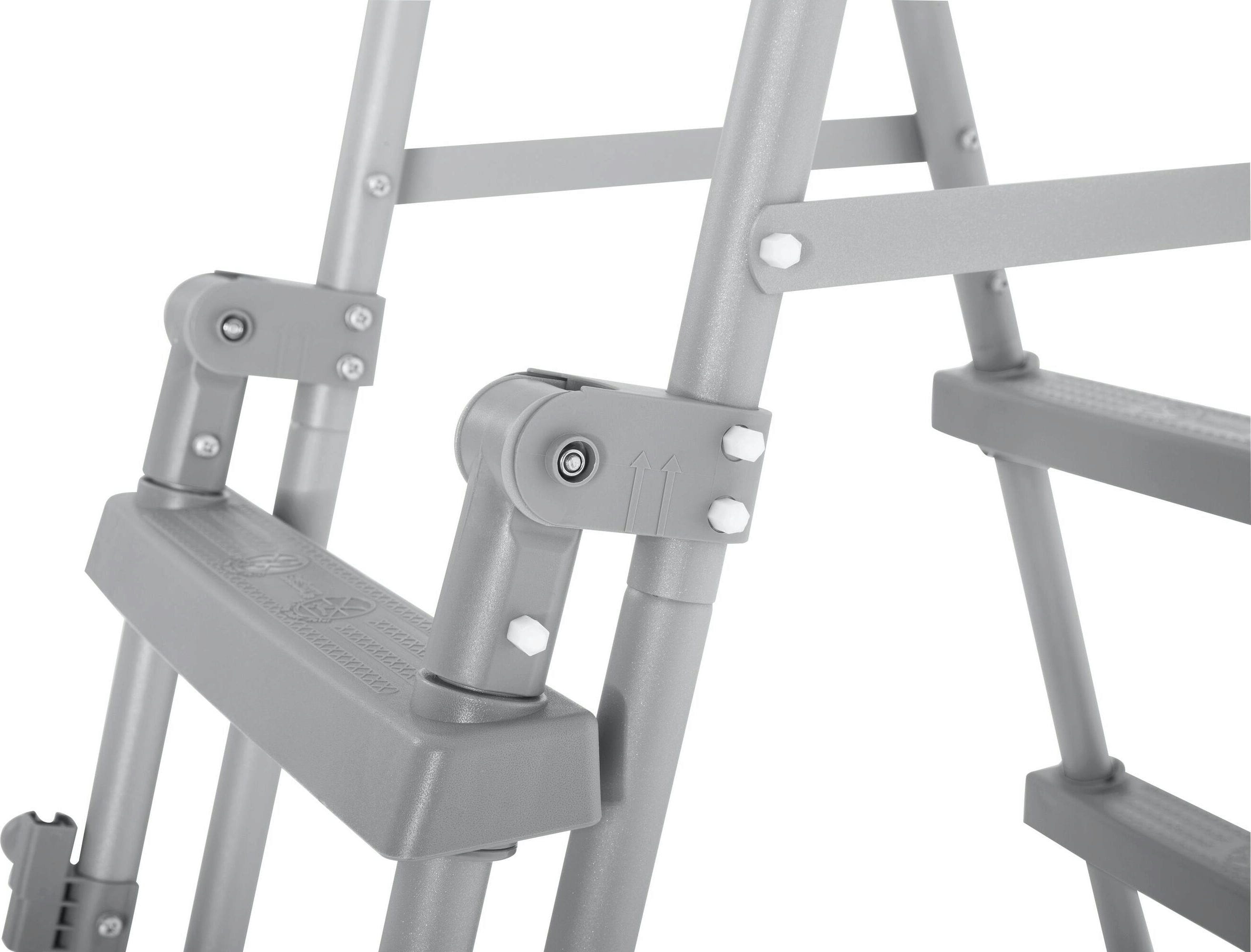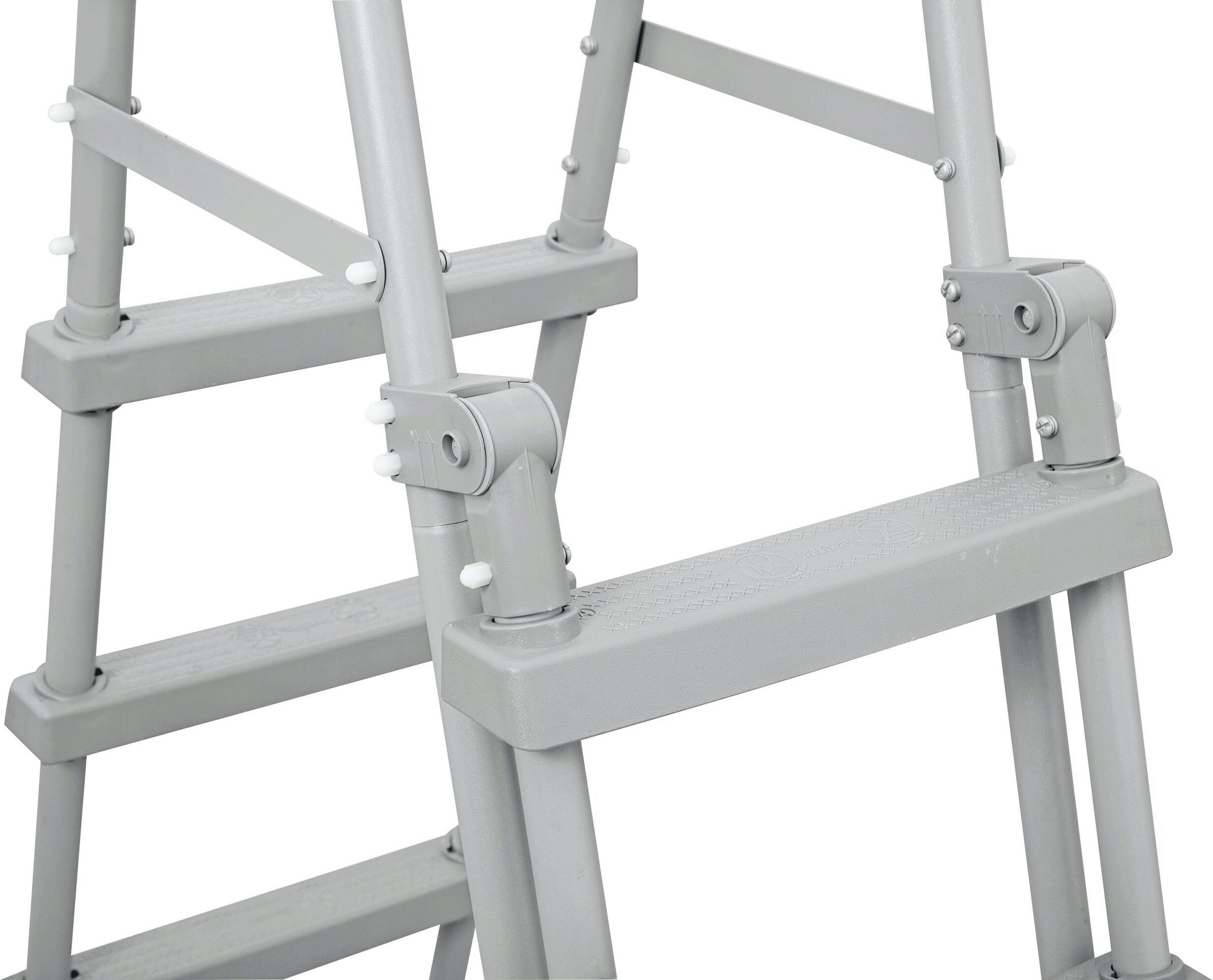 Mit der grauen Bestway® Sicherheitsleiter schaffst du die ideale Verbindung zwischen Garten und kühlem Nass! Diese Leiter wurde speziell für Aufstellpools bis zu einer Höhe von 122 cm entwickelt und überzeugt durch ihre extrem stabile Stahlrohrkonstruktion, die dank einer speziellen Beschichtung bestens gegen Korrosion geschützt ist.