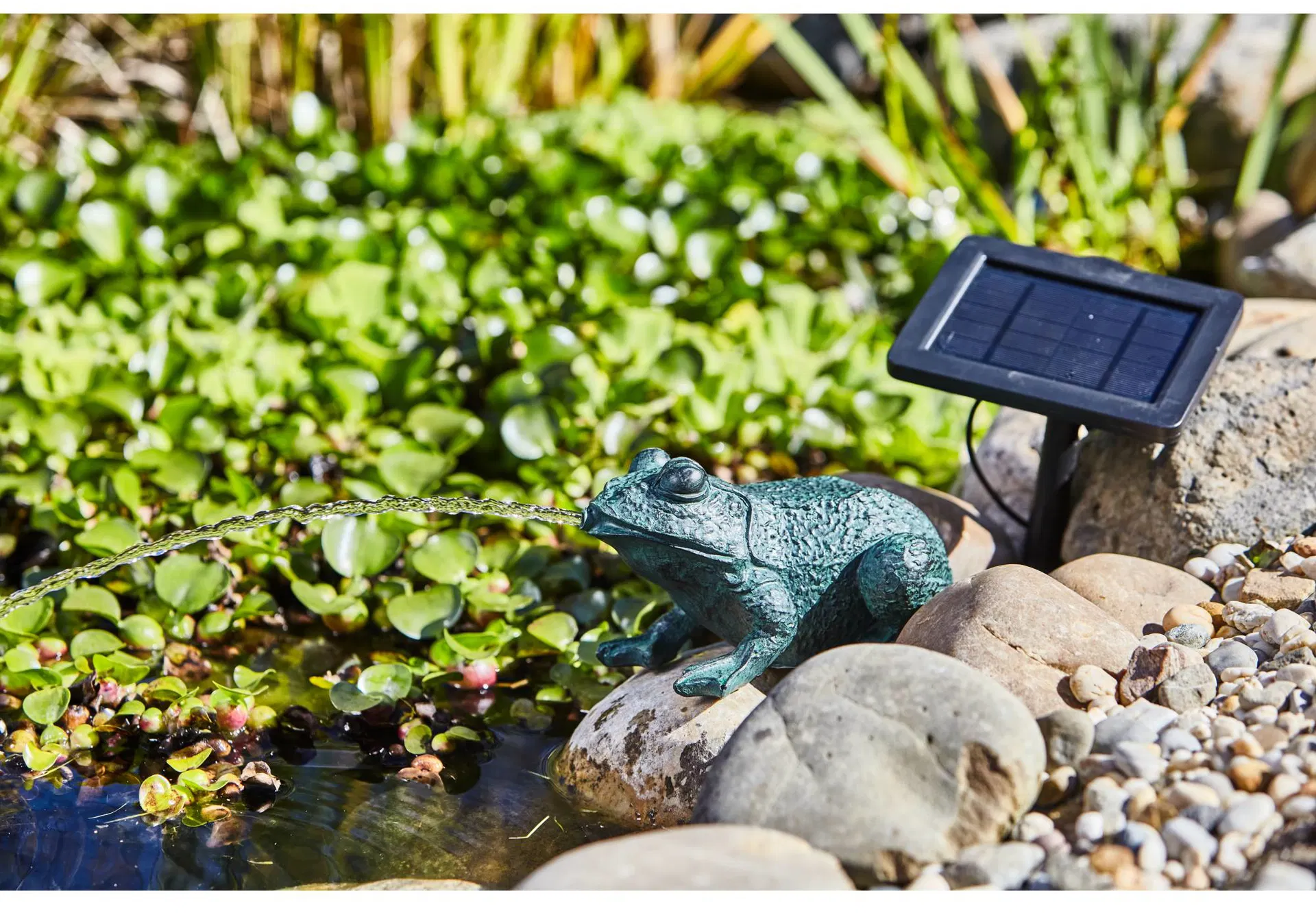 This HEISSNER complete set harnesses the power of the sun to sustainably increase the oxygen levels in your garden pond through atmospheric water features. The system consists of a robust polyresin figure, an efficient pump, and a solar module with a ground spike. Thanks to the included hose, it is ready to use in seconds. The weatherproof construction requires no mains power connection, providing a maintenance-free solution for healthy pond water. By improving aeration, it naturally inhibits algae growth and promotes the vitality of pond life.