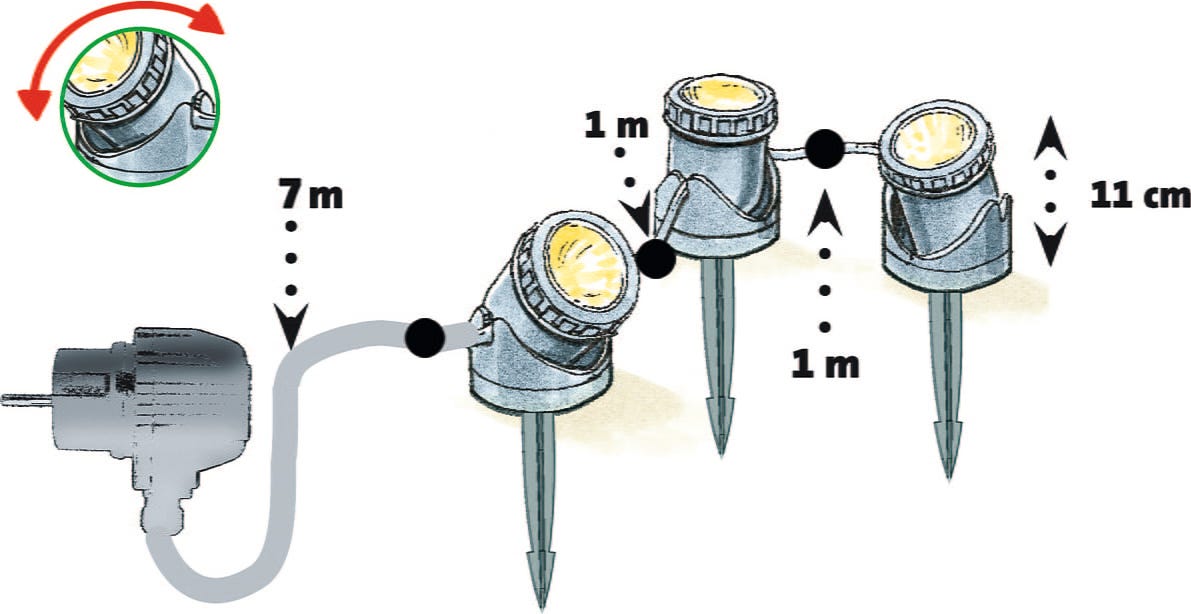 Pond light with 7 m connection cable between transformer and lamp
