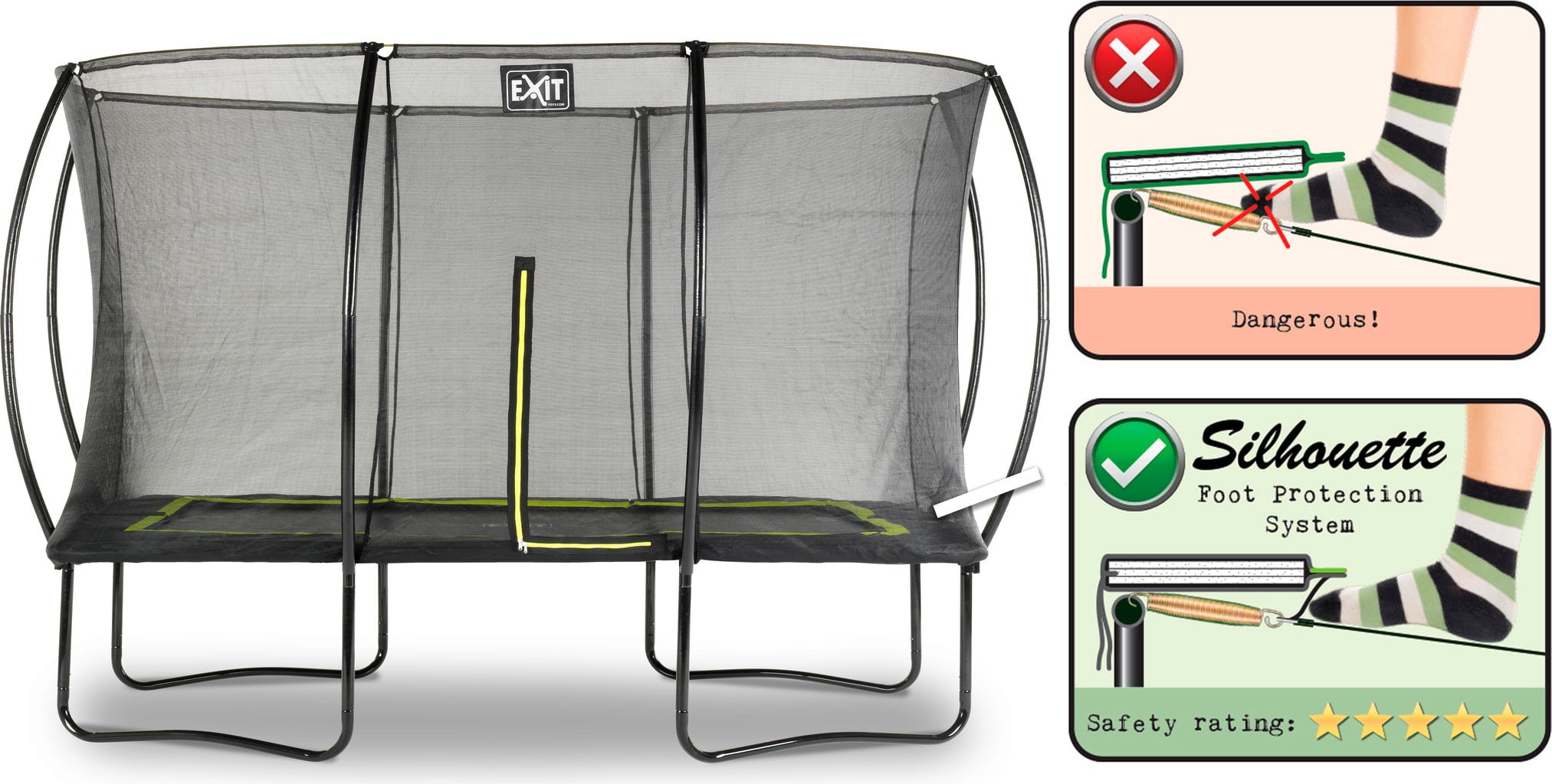 Parents don't want to have to worry about the safety of their children. With EXIT Toys Silhouette Trampoline on four metal W feet, children experience perfect bouncing fun with maximum safety.