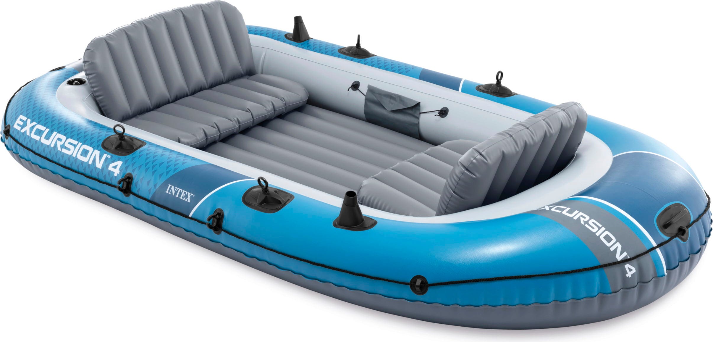 The INTEX Excursion 4 Inflatable Boat offers up to four people a comfortable and safe way to explore vast lakes or calm rivers. The set includes two high-quality aluminium paddles and a high-performance hand pump.