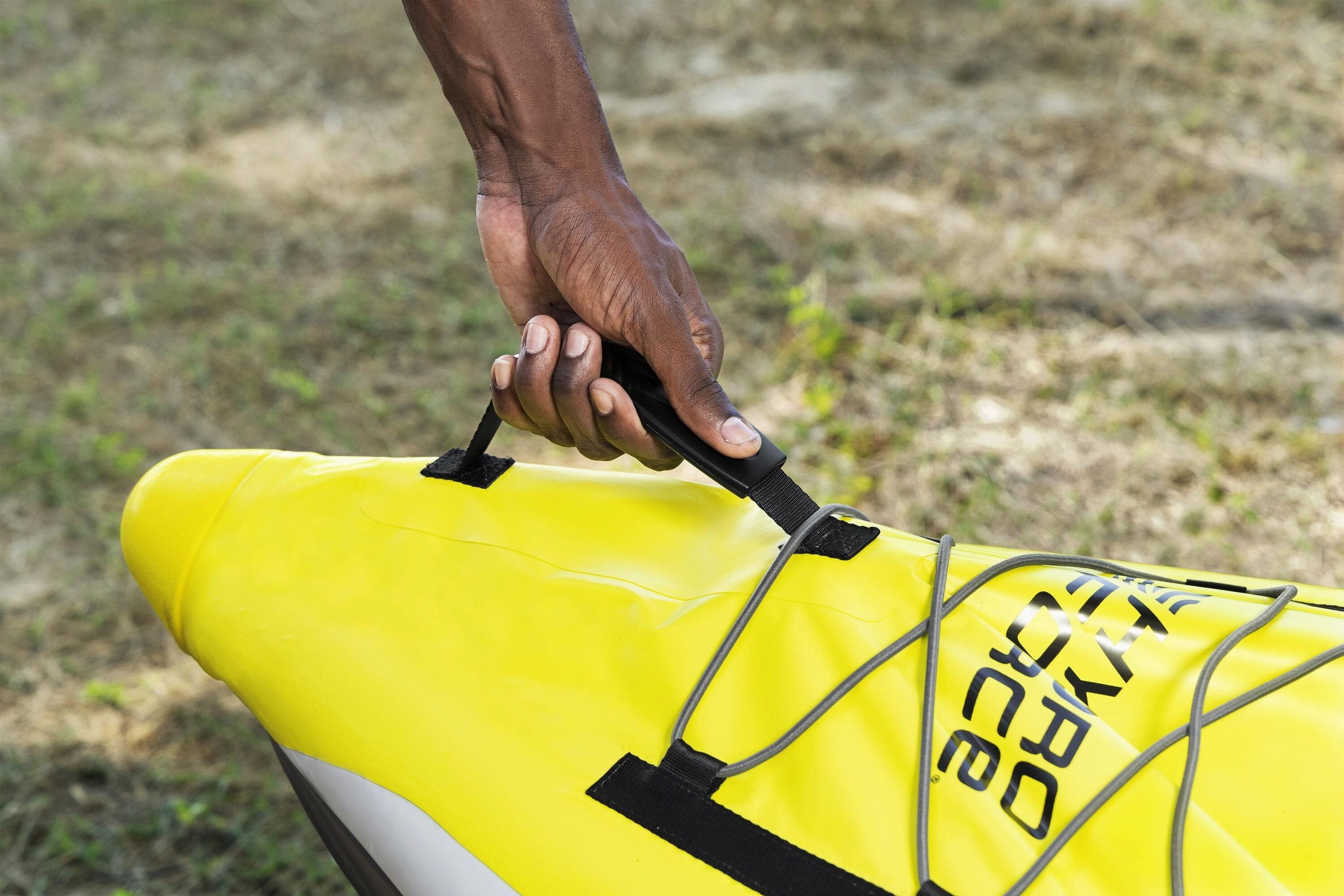 La quilla fija y las dos aletas garantizan la máxima diversión al navegar, manteniéndote con precisión en el rumbo. Gracias al cómodo asiento de espuma, al reposapiés y al completo set de accesorios —que incluye bomba, remos y mochila—, ¡nada se interpondrá en tu próxima aventura de larga distancia!