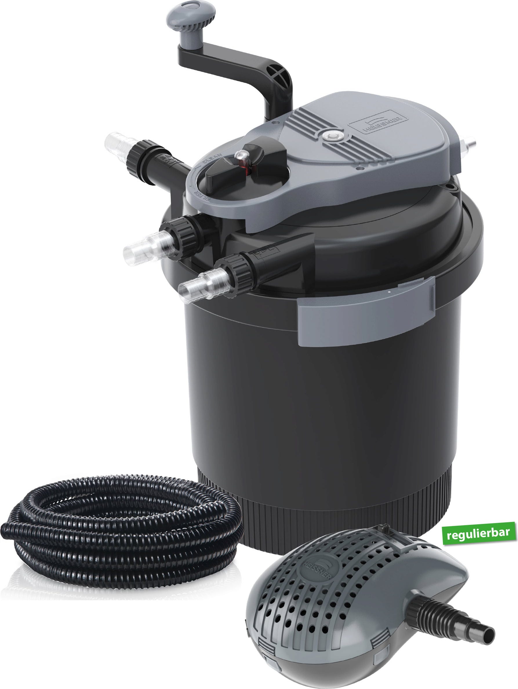 El sistema de filtración para estanques Aqua Craft Eco de HEISSNER con bomba regulable y clarificador UVC integrado ofrece una solución completa y eficaz para su estanque. Gracias al sistema de lavado a contracorriente, el filtro puede limpiarse en segundos sin necesidad de abrir la carcasa del filtro. La suciedad eliminada se descarga fácilmente a través de una salida independiente. El agua filtrada puede dirigirse a arroyos o manantiales situados más arriba o utilizarse para elementos acuáticos decorativos.