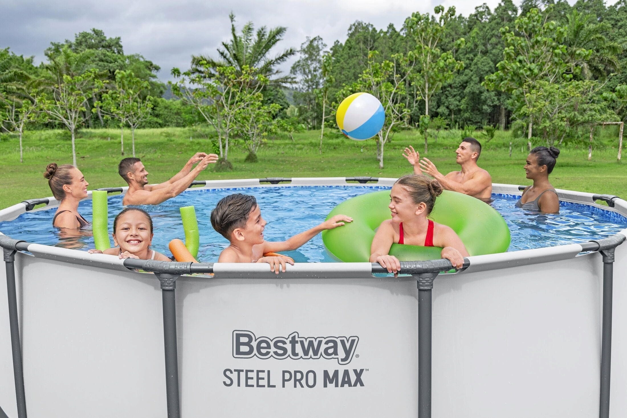 Découvre la piscine à cadre Steel Pro MAX™ (396 x 122 cm) de Bestway® pour ton jardin. Des éléments de cadre en acier résistants à la corrosion (reliés par le système innovant ClickConnect™) et un liner DuraPlus™ à 3 couches particulièrement résistant ne sont que deux des avantages de ce modèle.