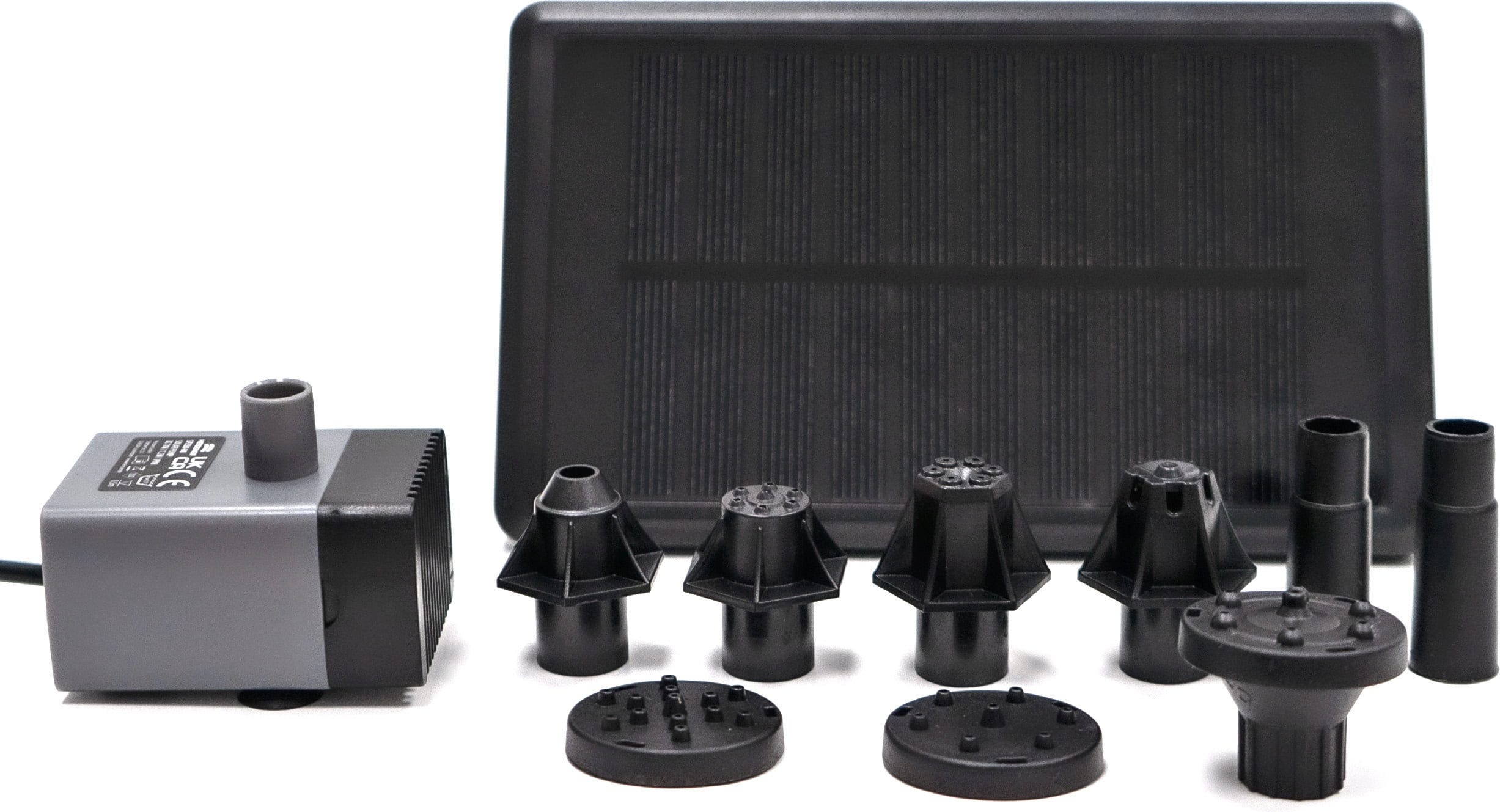 - Avec panneau solaire et 7 embouts de jeux d'eau